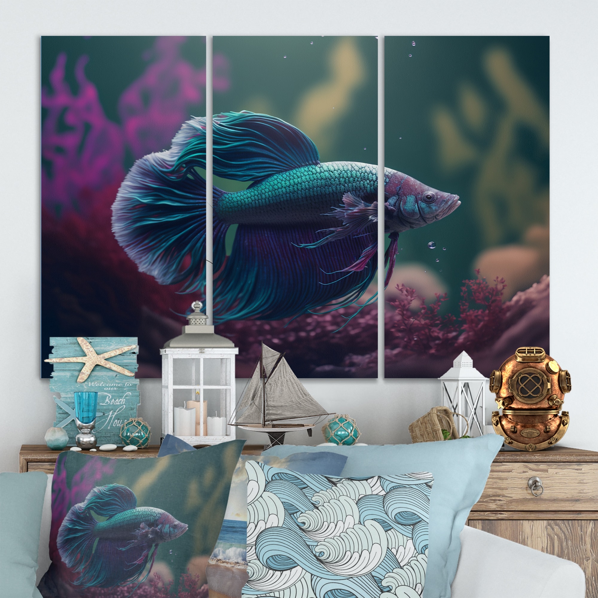 Designart "Magnificent Bettafish in Shades of Blue And Purple I" Animal Fish Canvas Wall Art Print