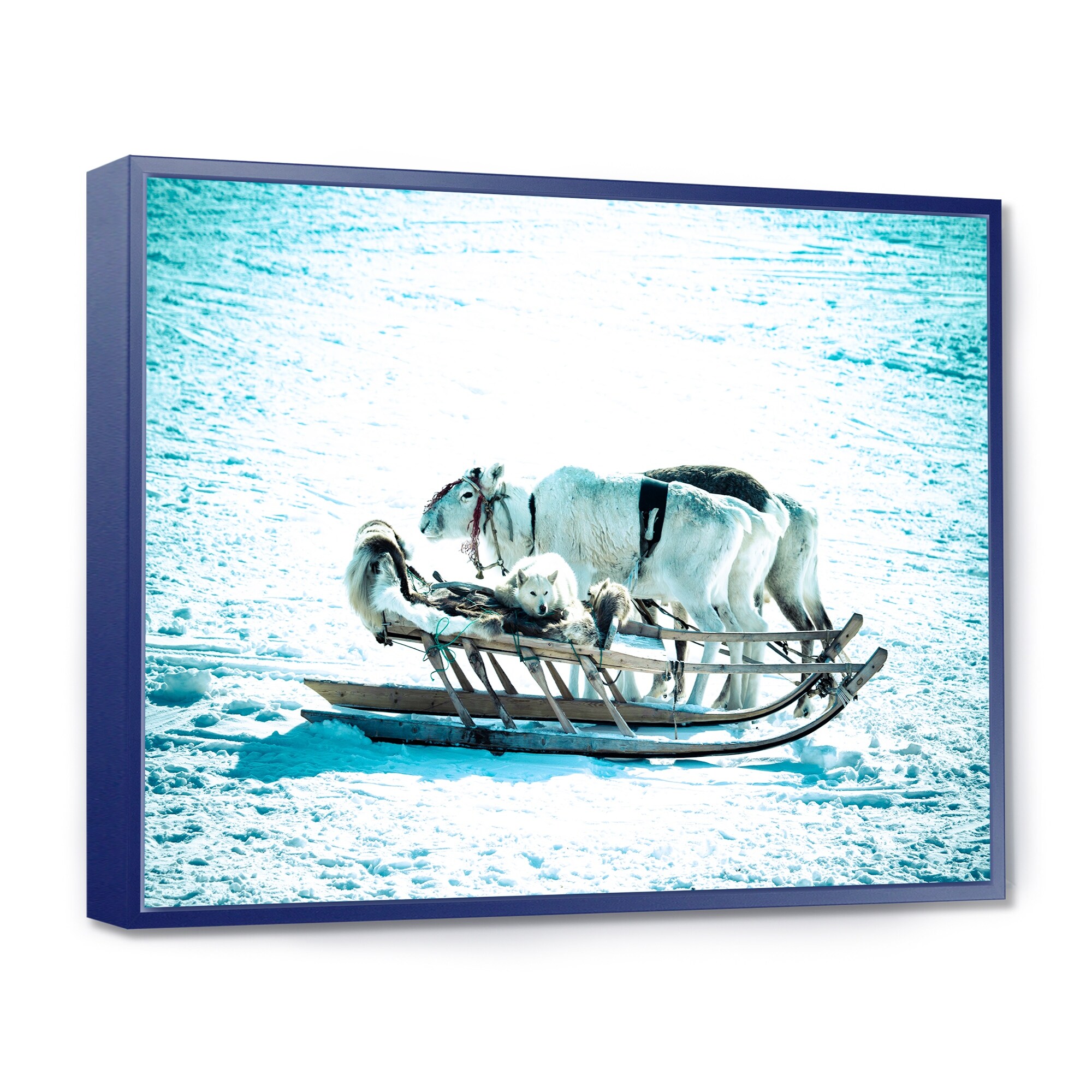 Designart "Dogs on Reindeer Sleigh" Oversized Animal Framed Canvas Art