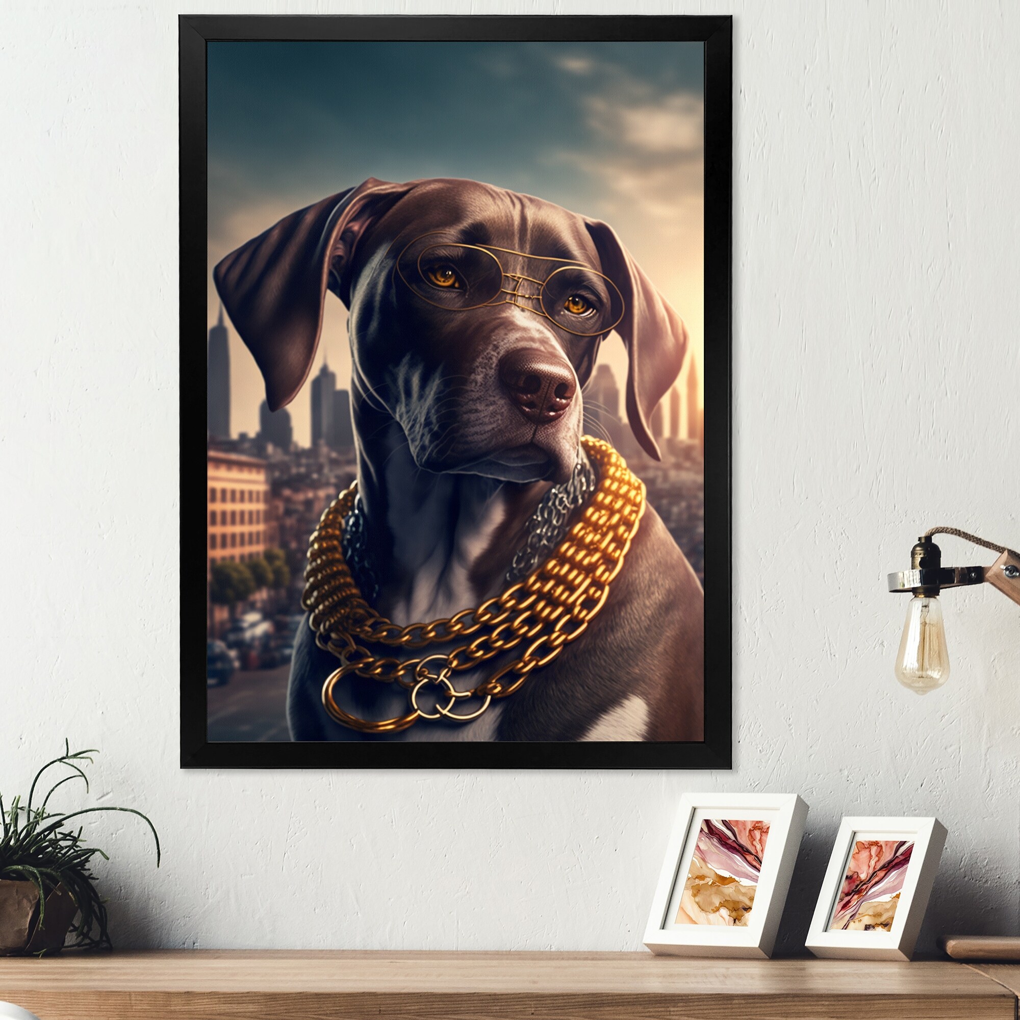 Designart "German Shorthaired Pointer Gangster in NYC" Animals Framed Art Print