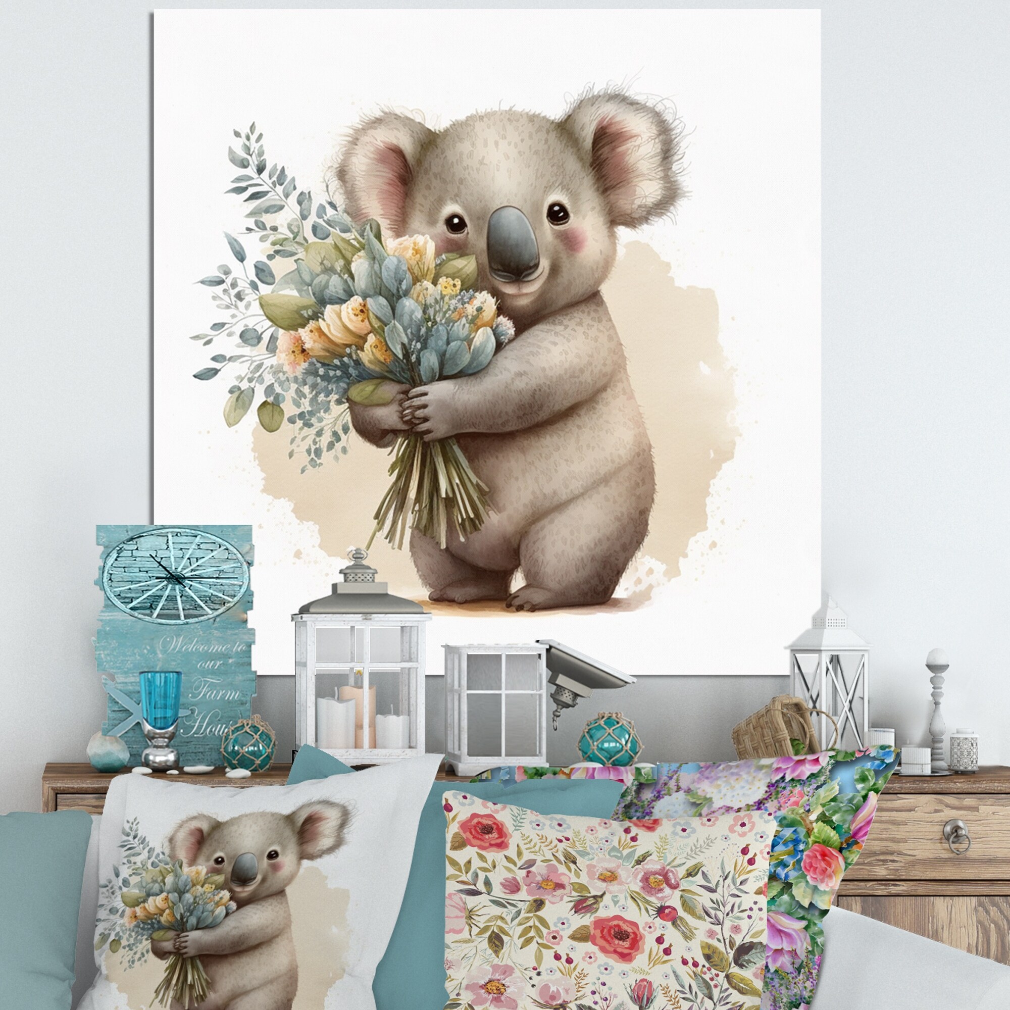 Designart 'Koala Bear Holding Flowers' Animals Canvas Wall Art