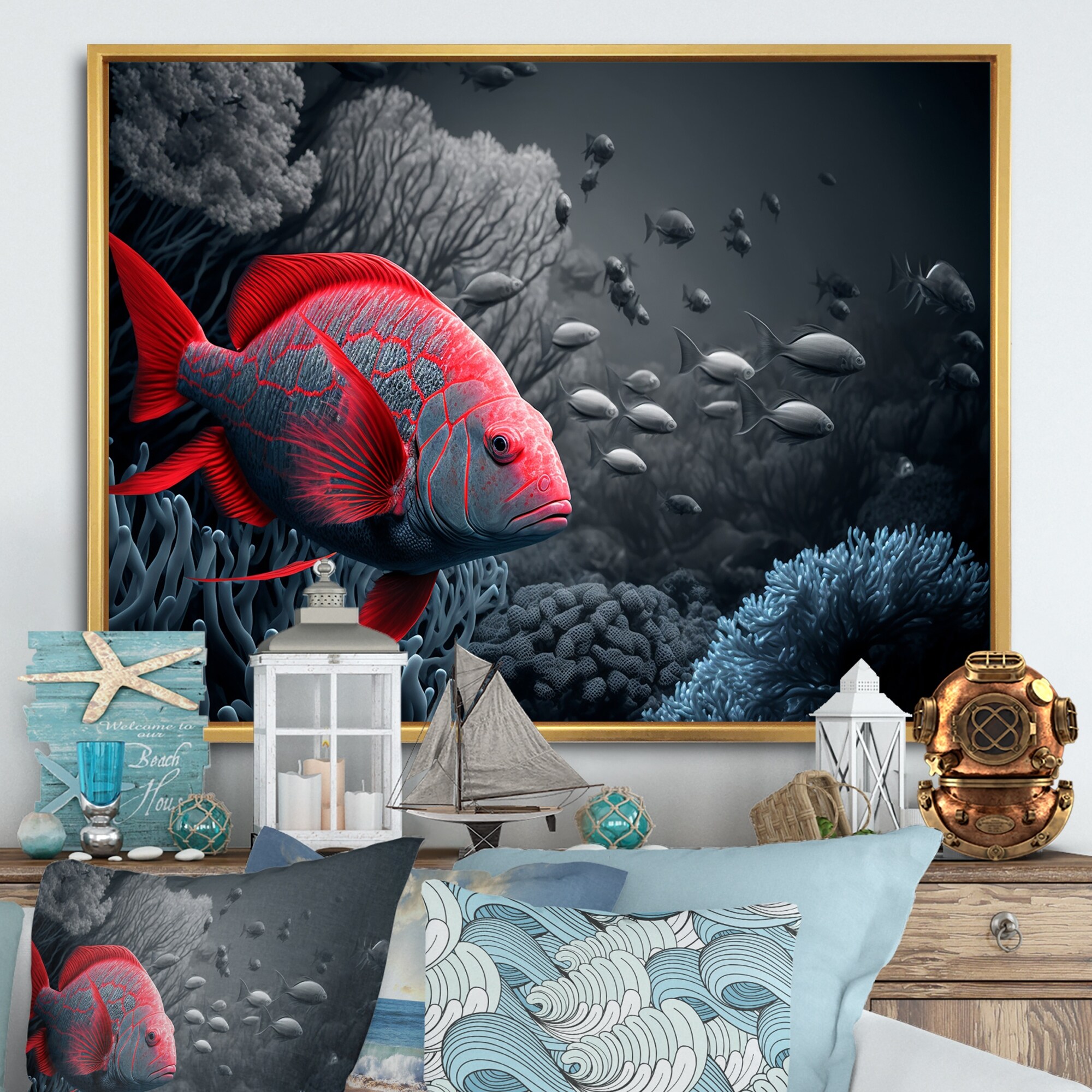 Designart "Tropical Fish in Blue And Red IV" Animal Fish Framed Canvas Wall Art Print