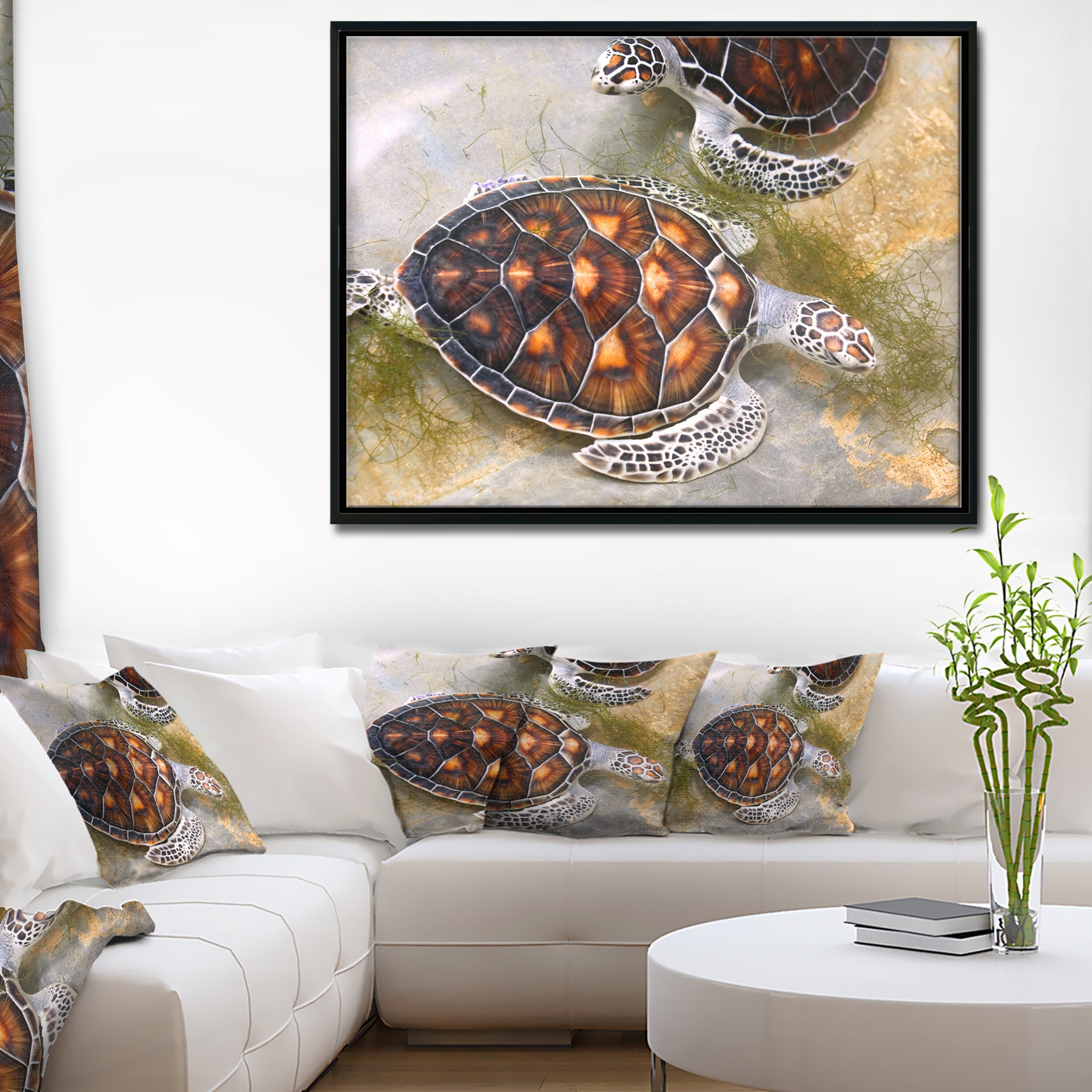 Designart "Sea Turtles in Nursery" Animal Framed Canvas Art Print