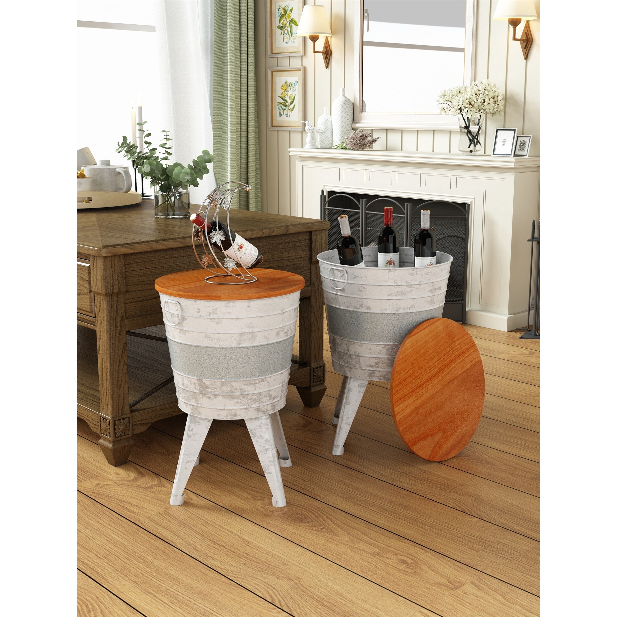 Set of 2 Distressed Metal Accent Cocktail Table, Antique Grey