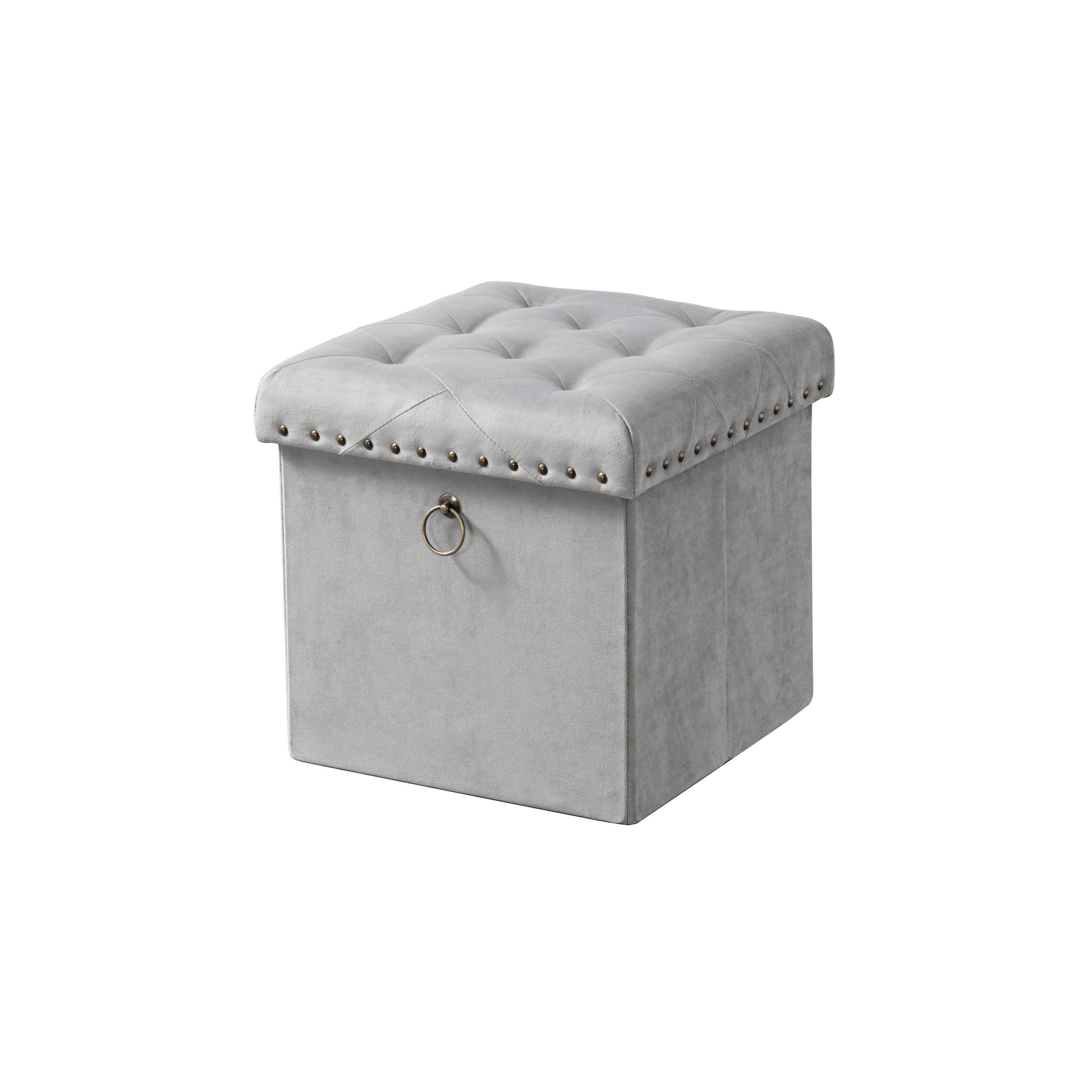 Chic Home Cassy Storage Ottoman Velvet Upholstered Antique Brass