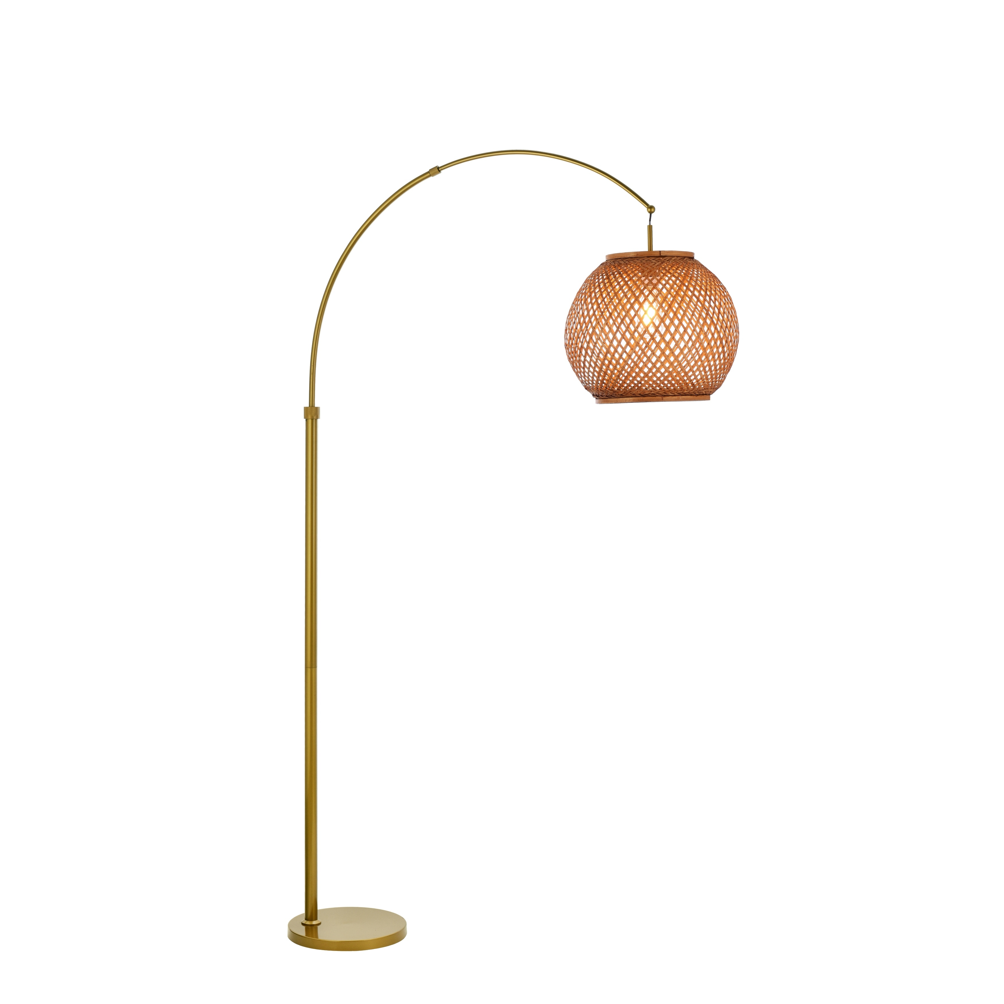 1-Light 75" Arc Floor Lamp with Hand-woven Bamboo Shade