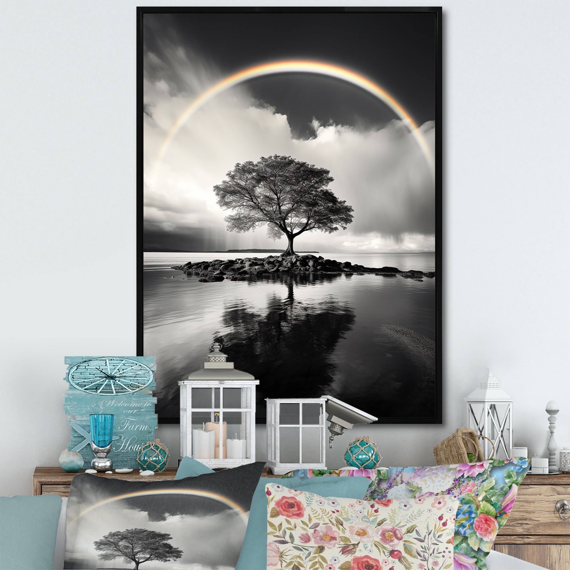 Designart "Rainbow Grayscale Arc Over Tree II" Rainbow Framed Canvas Print
