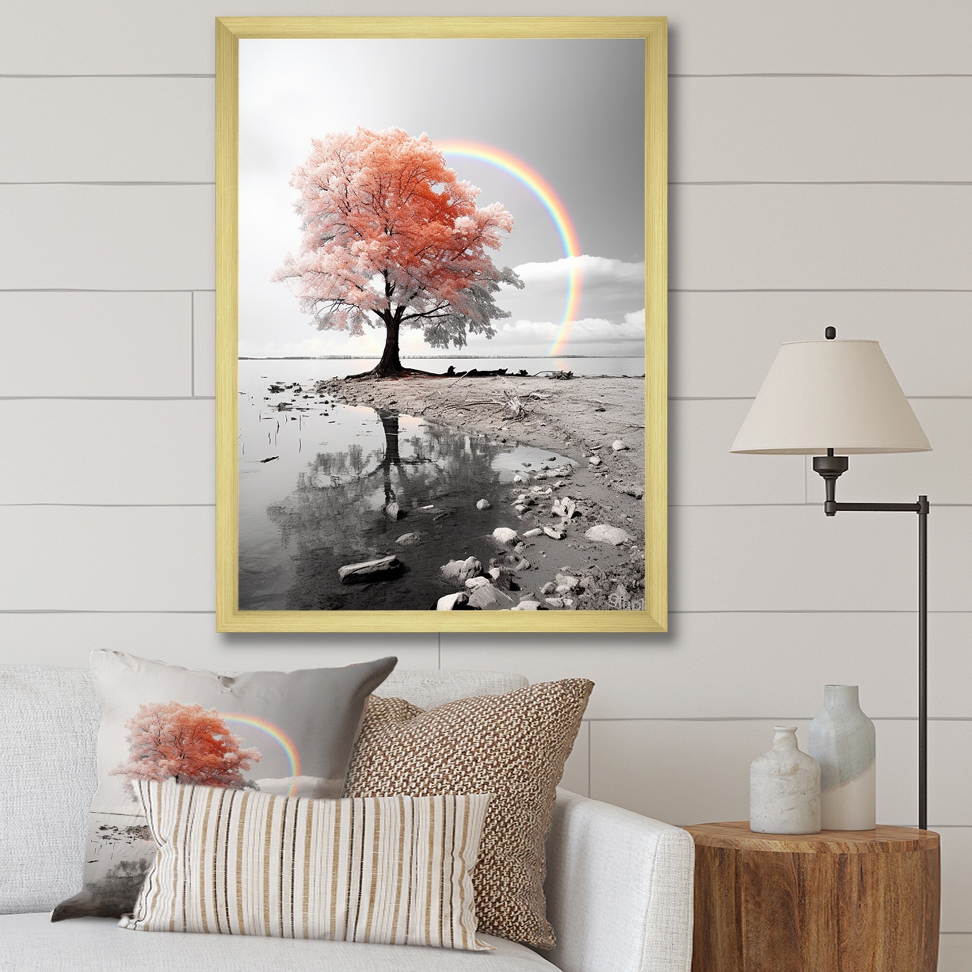 Designart "Rainbow Arc Over Pink Tree" Rainbow Framed Wall Art Prints