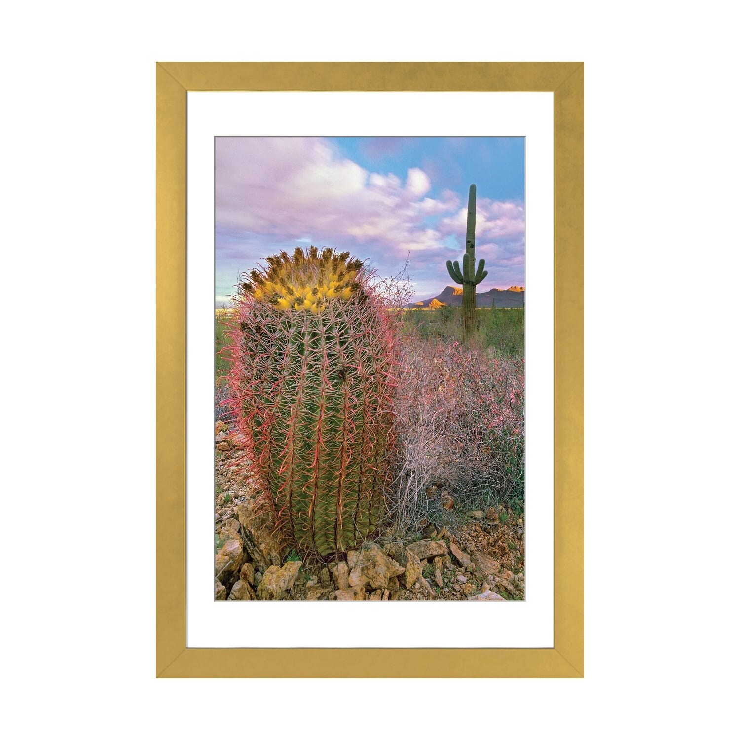 iCanvas "Barrel and Saguaro cacti with the Santa Catalina Mountains, Catalina State Park, Arizona" by Tim Fitzharris
