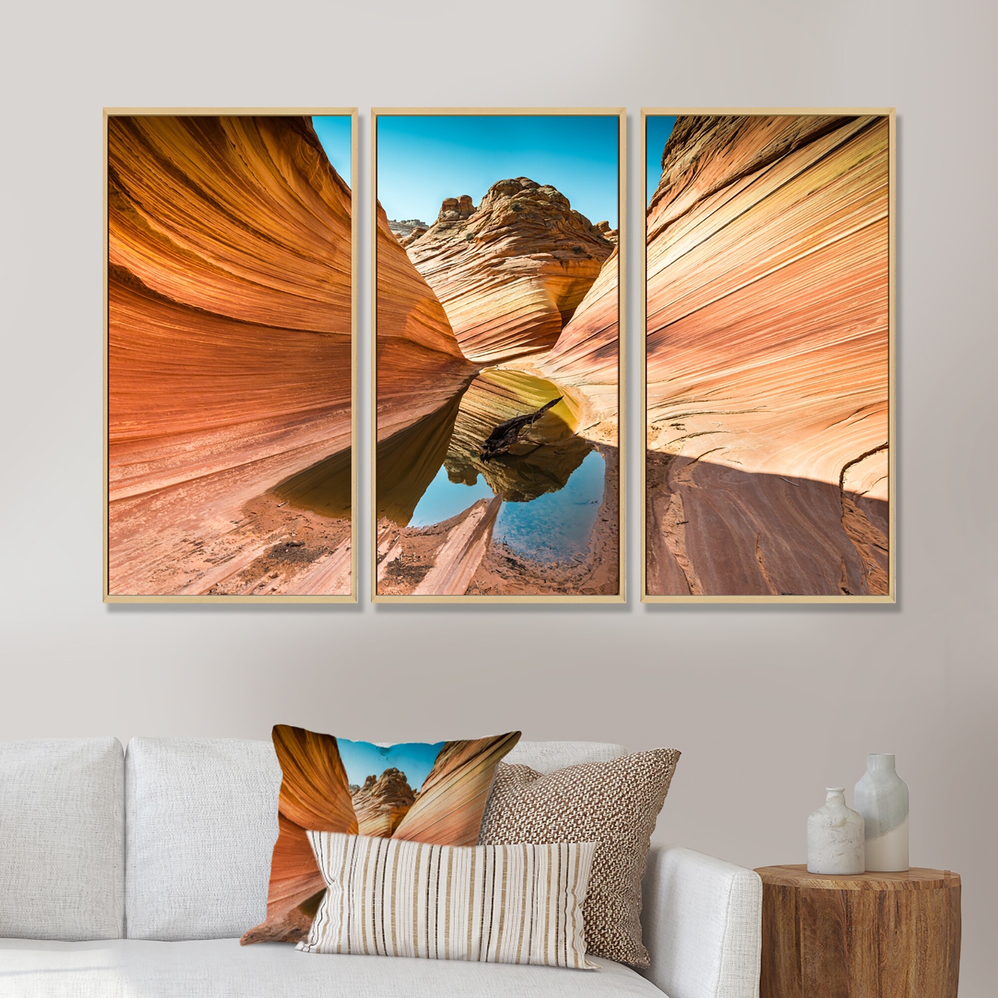Designart "Water inside Arizona Wave" Landscape Framed Artwork Set of 3 - 4 Colors of Frames