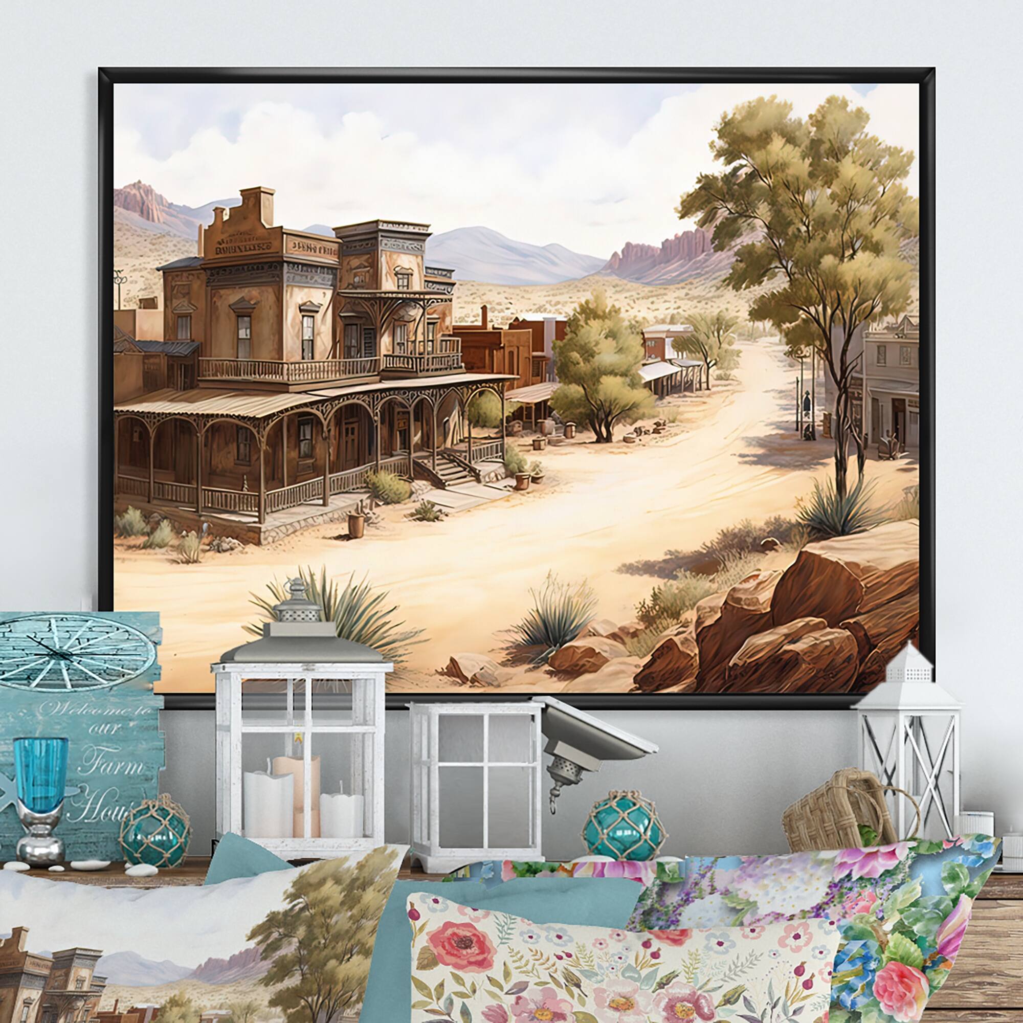 Designart "Large Wild West Arizona Town II" Southwestern Framed Canvas Art Print