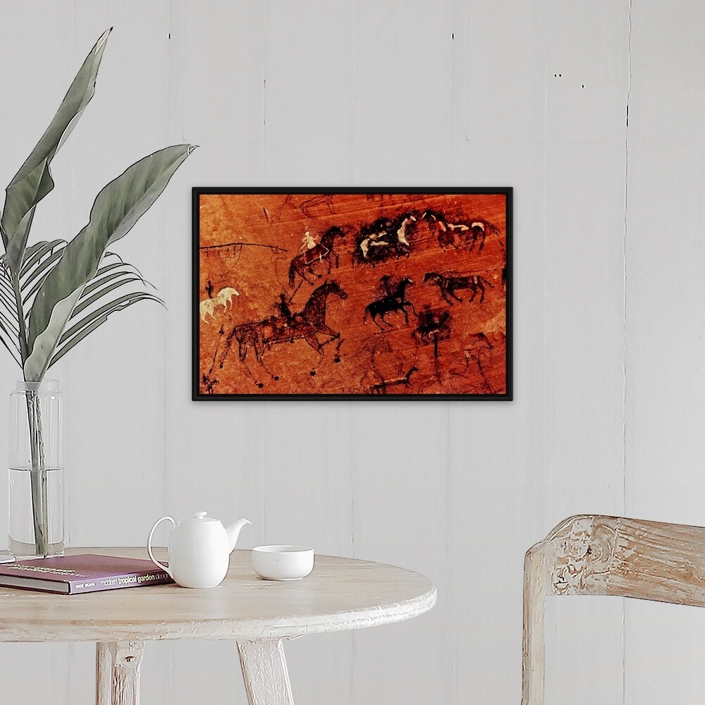 "Petroglyphs on Rock, Canyon De Chelly National Monument, Arizona, USA" Black Float Frame Canvas Art