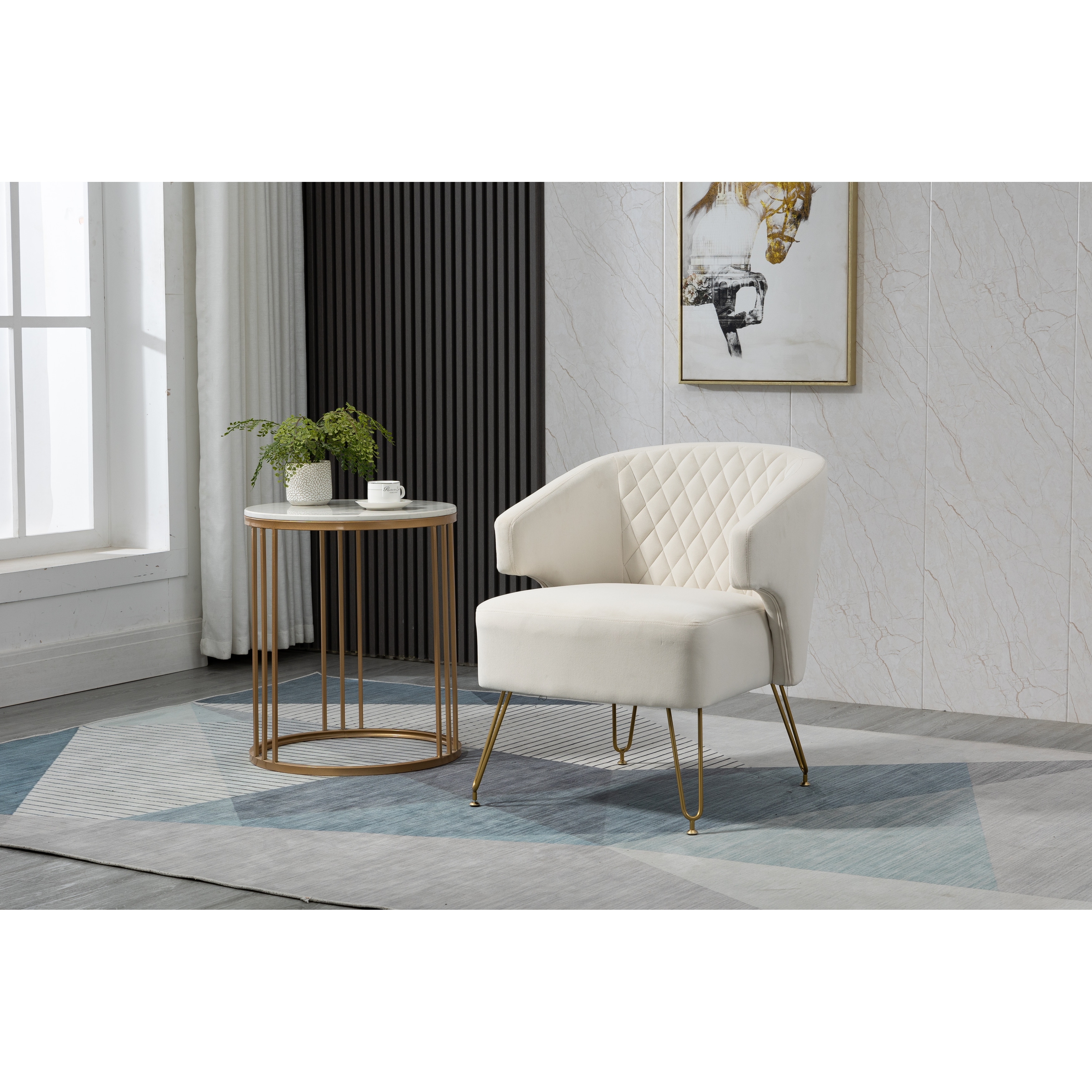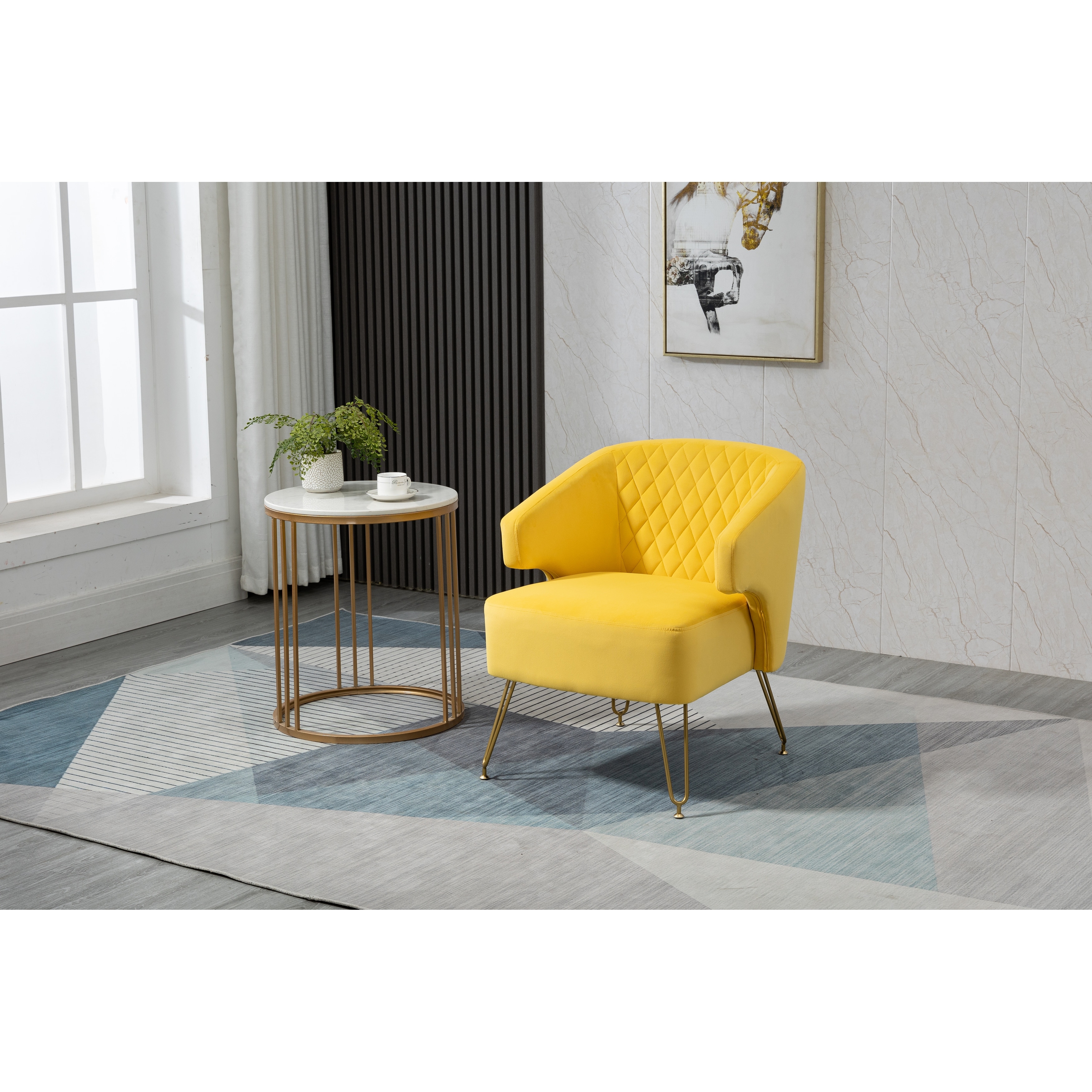 Contemporary and Classic Style Accent Chairs Arm Chair Velvet Fabric Padded Seat with Metal Base and Button-tufted Backrest