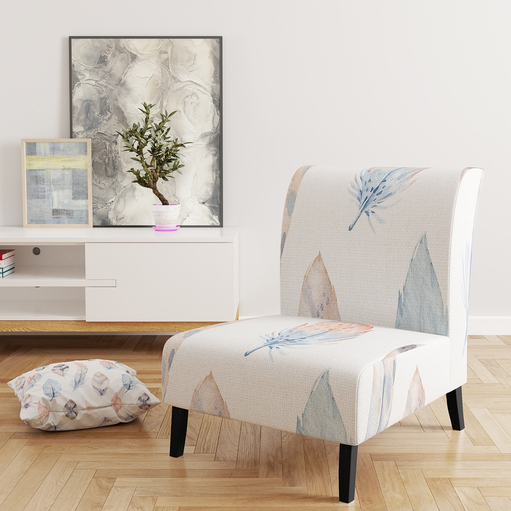 Designart "Pattern Of Colored Feathers" Upholstered Patterned Accent Chair and Arm Chair