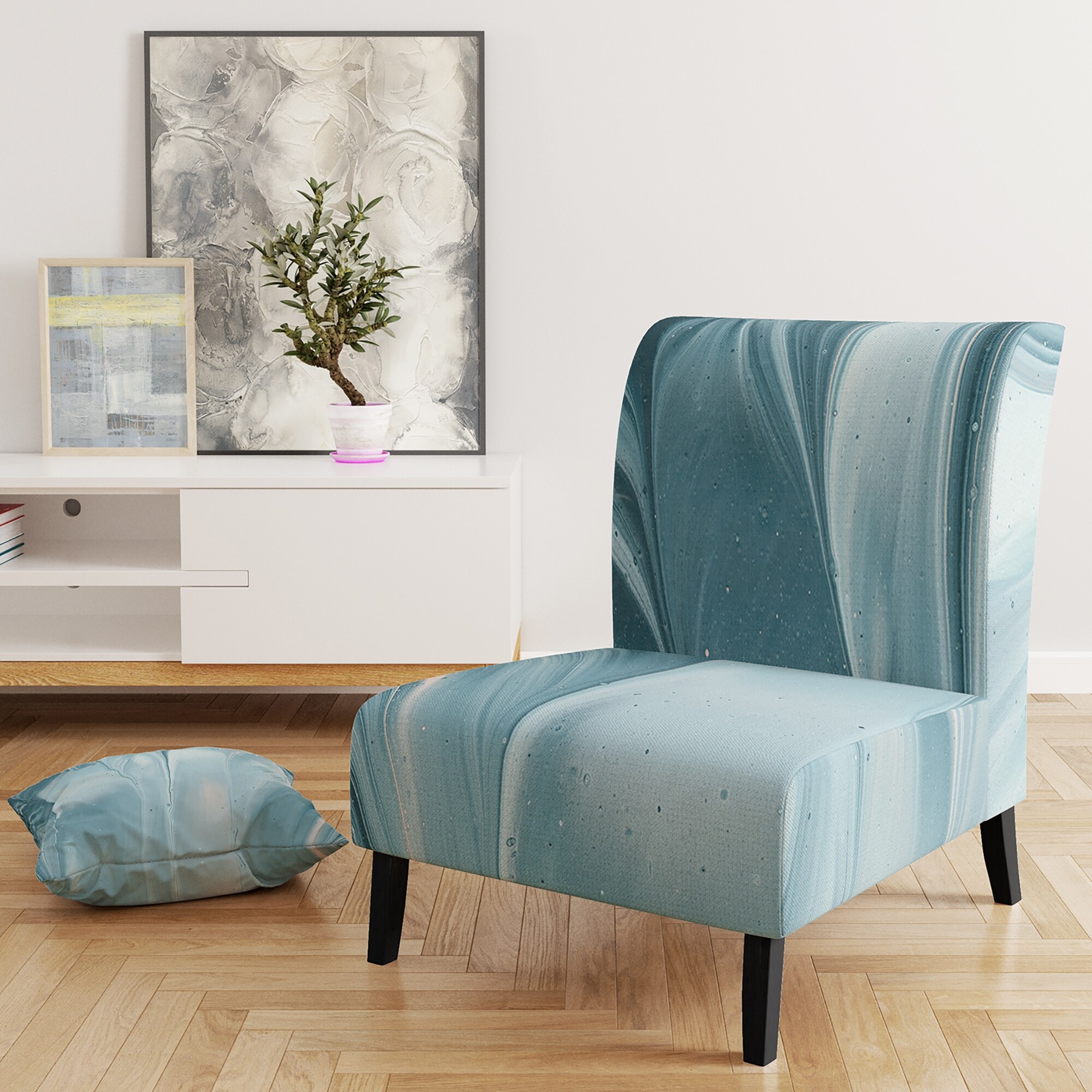 Designart "Blue Modern Water III" Upholstered Glam Accent Chair - Arm Chair
