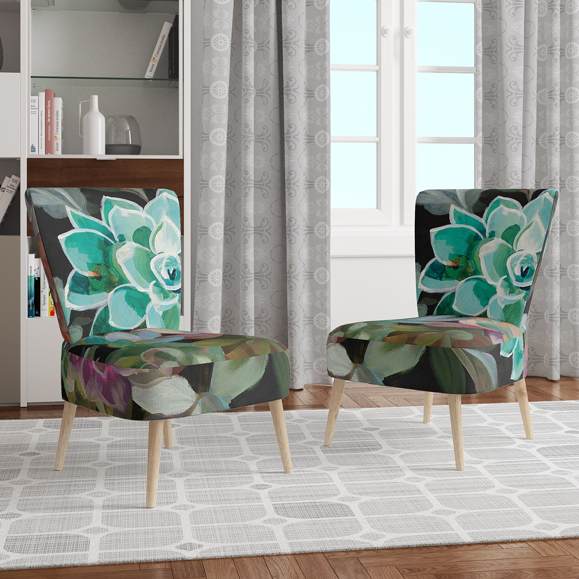 Designart "Floral Succulents" Upholstered Traditional Accent Chair - Arm Chair