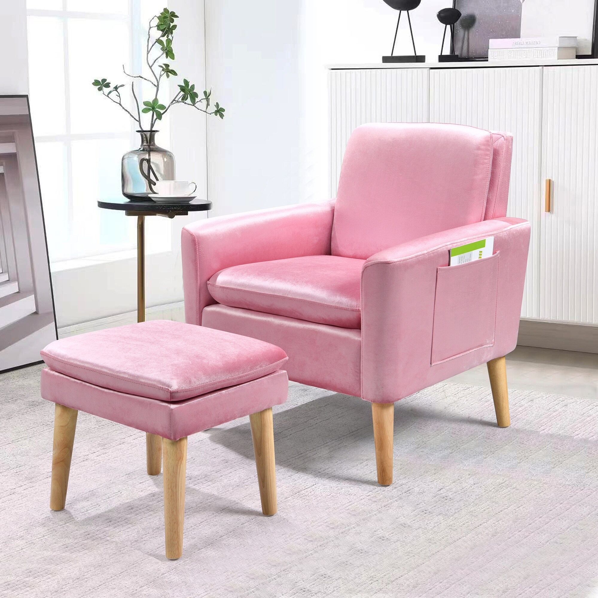 Velvet Arm Chair and Ottoman