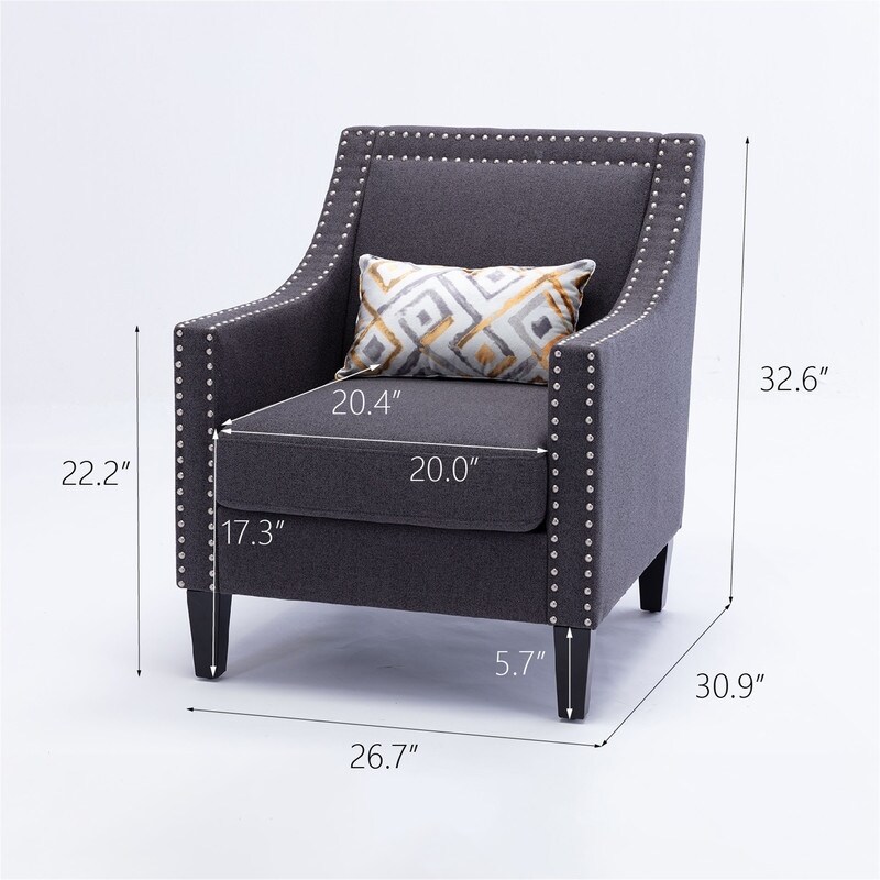 Linen Accent Arm Chair for Living Room with Nailheads and Wood Legs