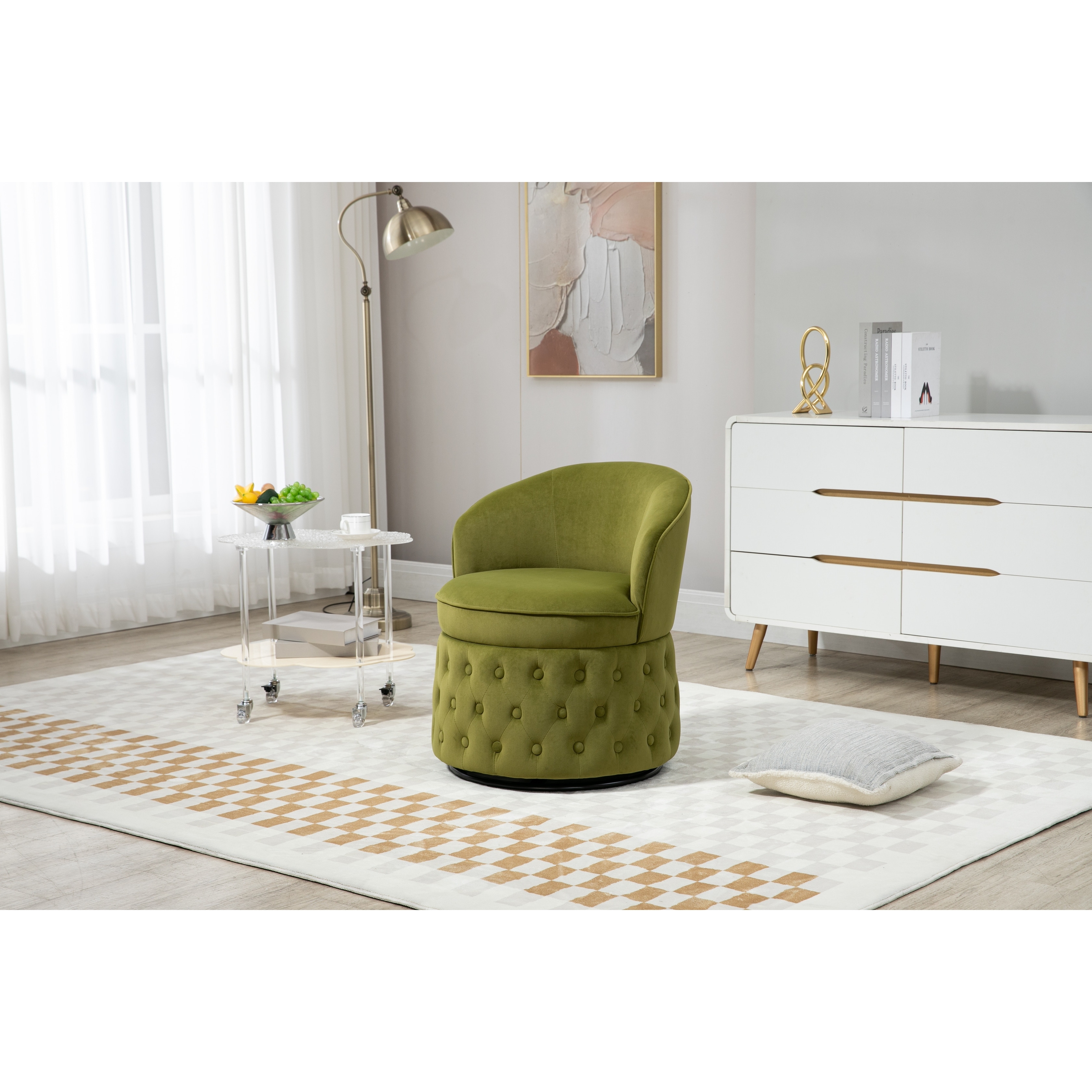 Swivel Barrel Chair Velvet Accent Sofa Chairs, Round Arm Chairs
