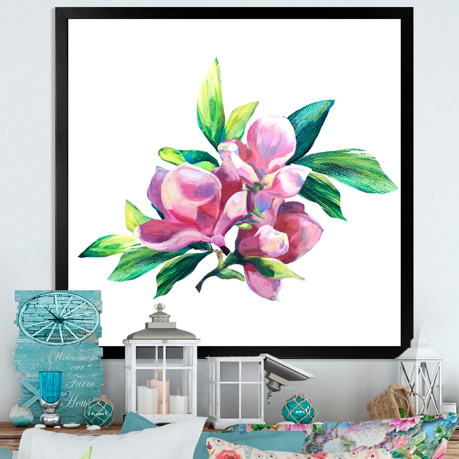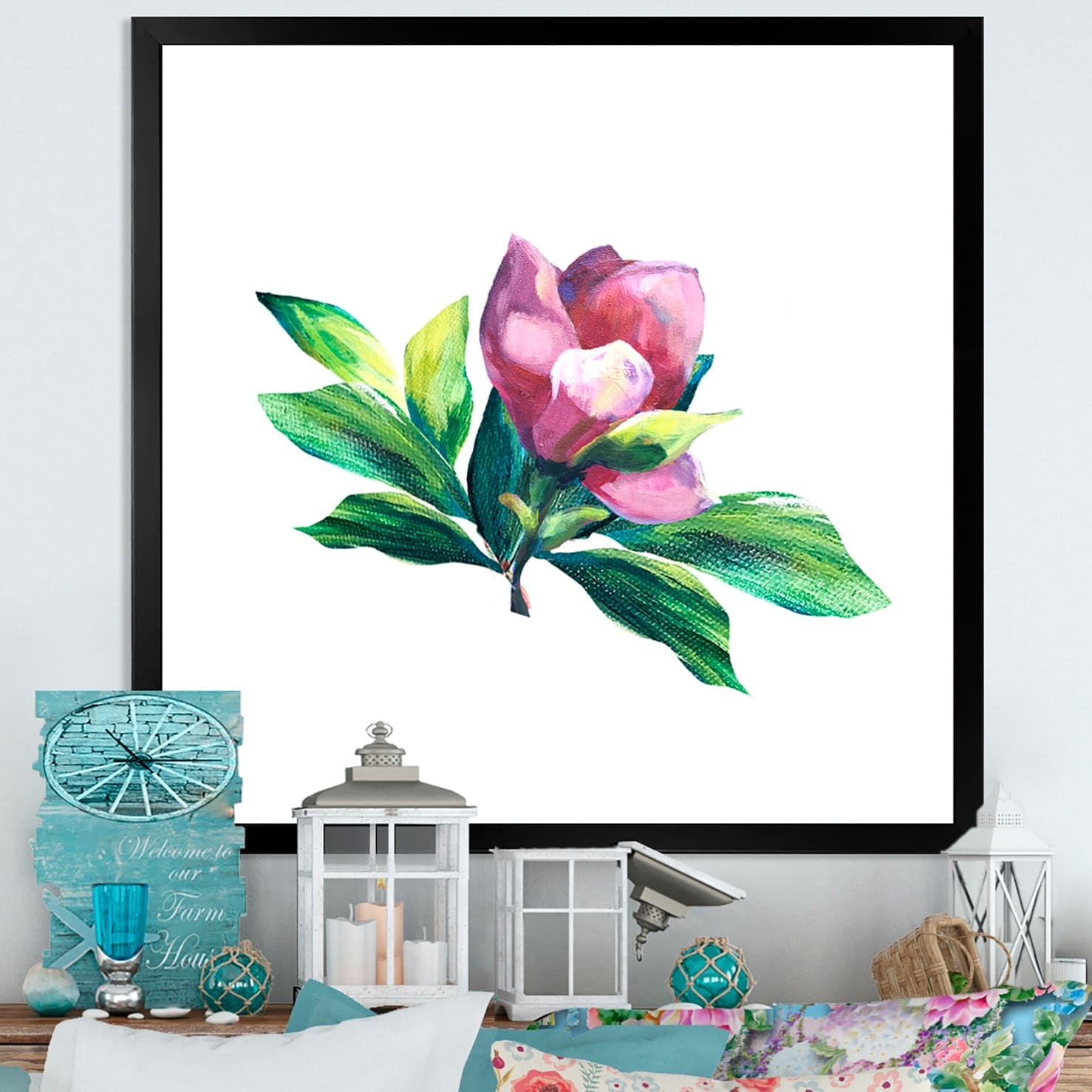 Designart "Green And Pink Flower Arrangement II" Traditional Framed artwork