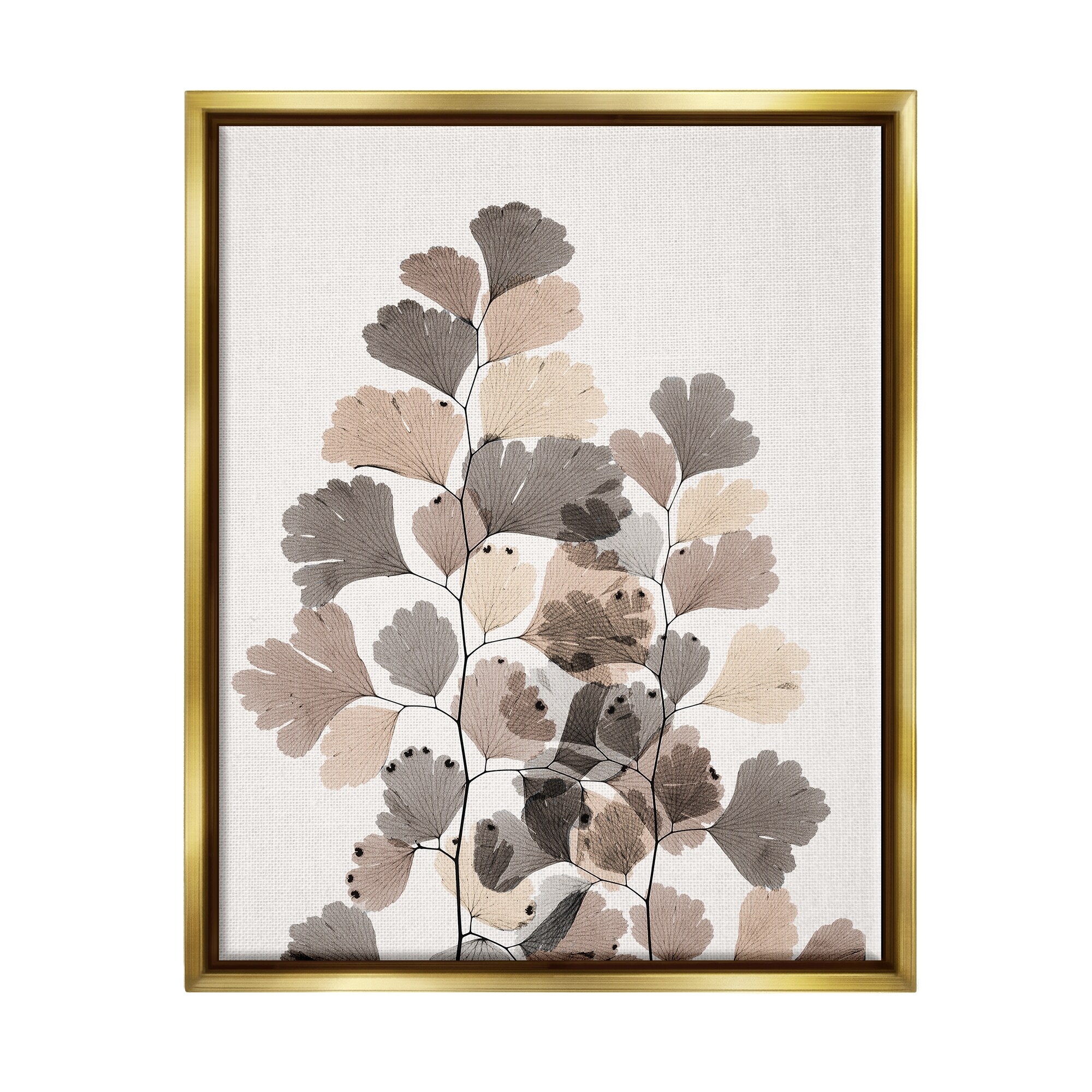 Stupell Modern Ginkgo Leaf Arrangement Translucent Brown Grey Leaves Floater Frame