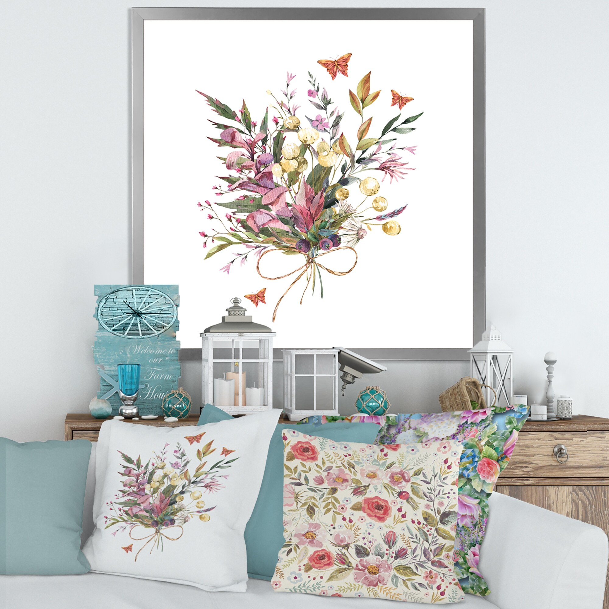 Designart "Vintage Floral Summer Wildflowers Arrangement" Traditional Framed Art Print