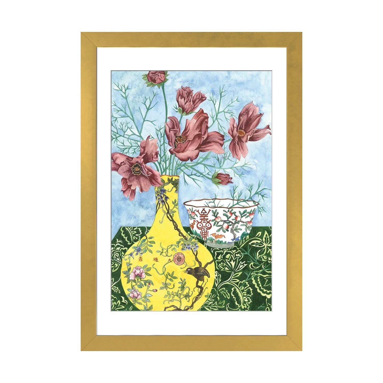 Designart "Green And Pink Flower Arrangement III" Traditional Framed Art Print