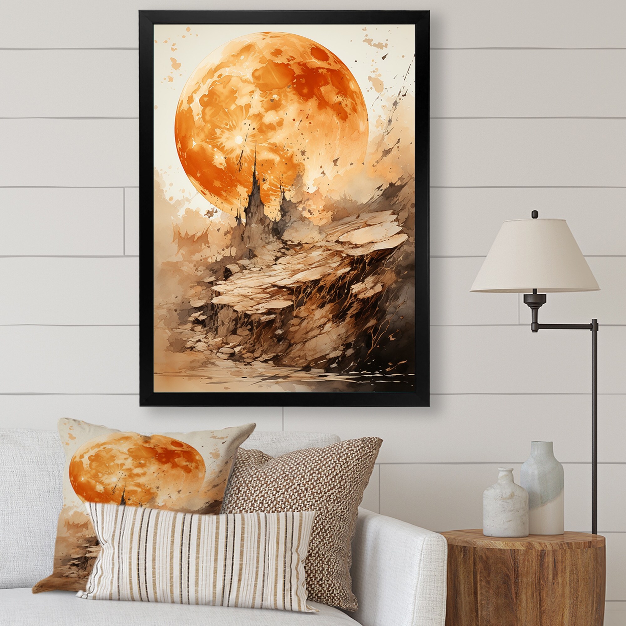 Designart "Myesterious Palnet With Abstract Mountain" Space Planet Framed Canvas Art Print