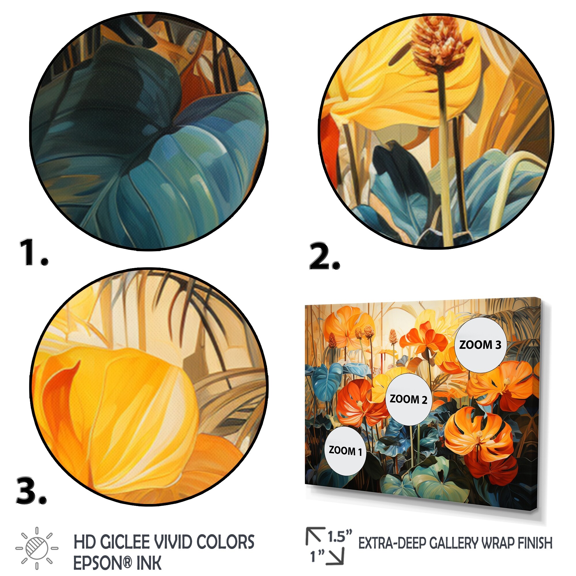 Designart "Orange Green Tropical Plants IV" Palms & Palm Trees Framed Canvas Wall Art
