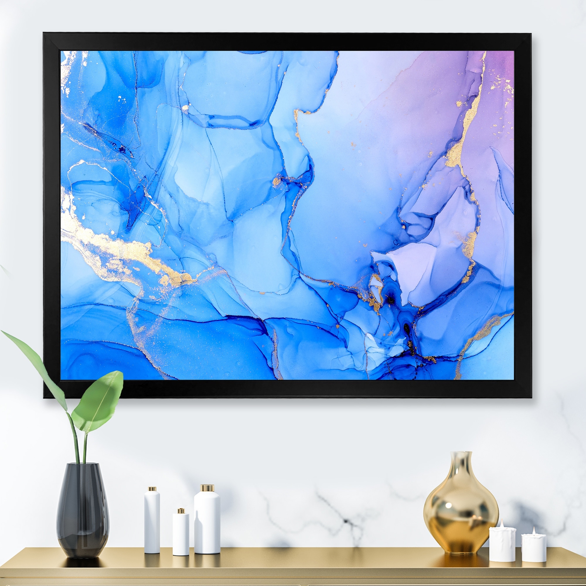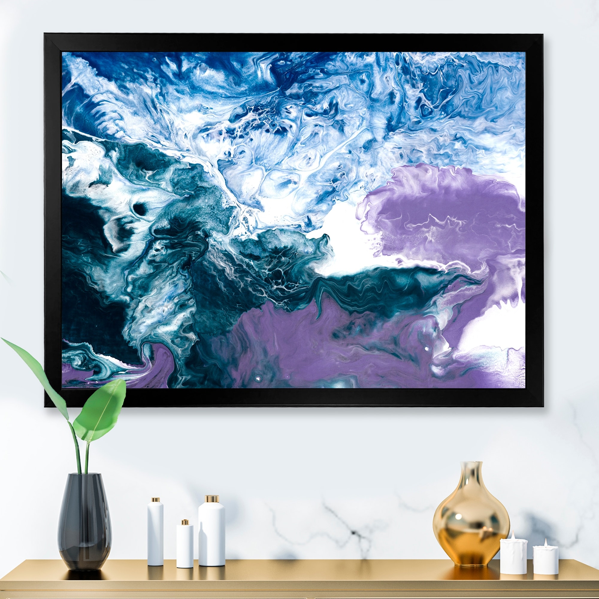 Designart "Blue And Violet Liquid Marble Art" Modern Framed Art Print
