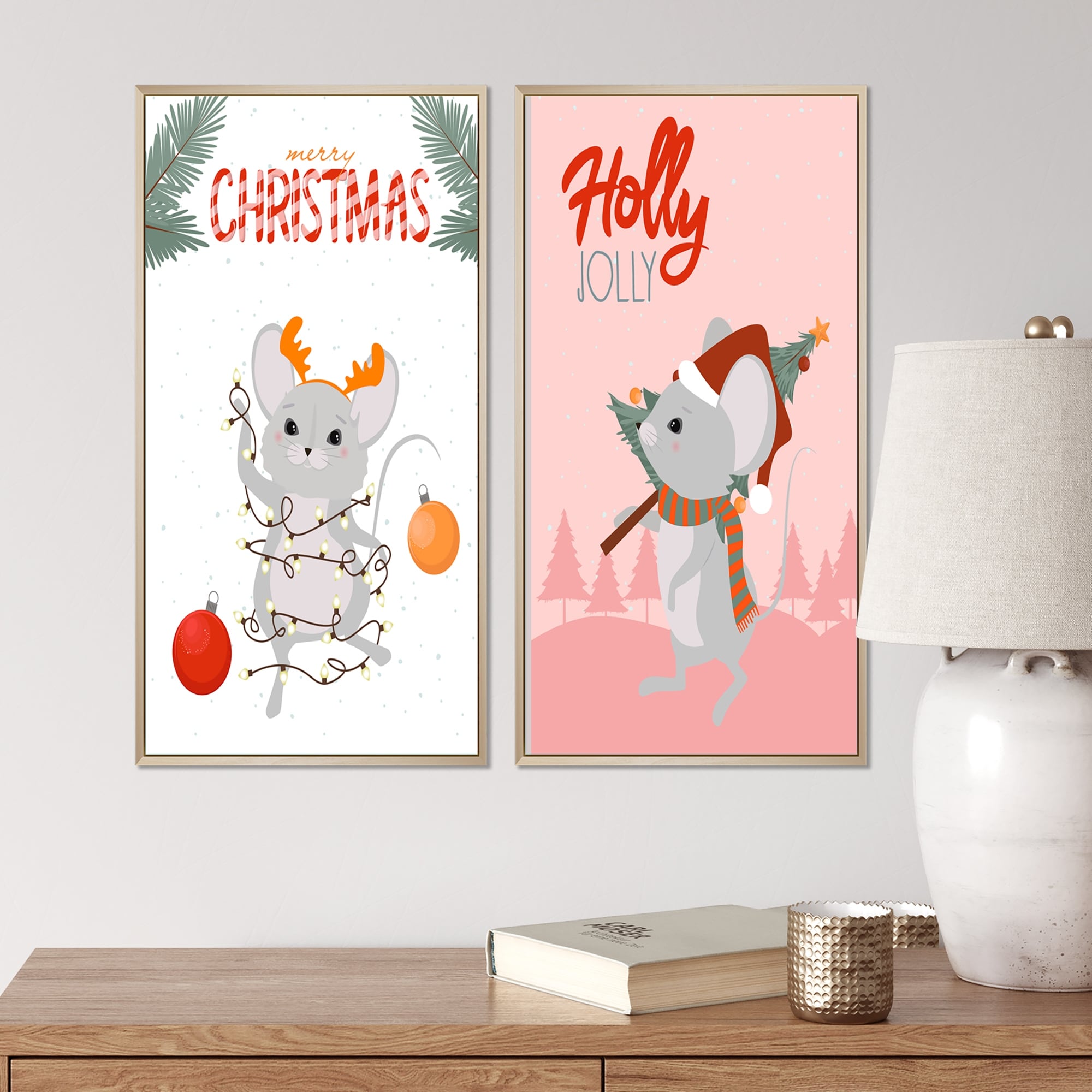 Designart "Christmas Wishes With Little Mouse I" Cottage Framed Art Set of 2 Pieces
