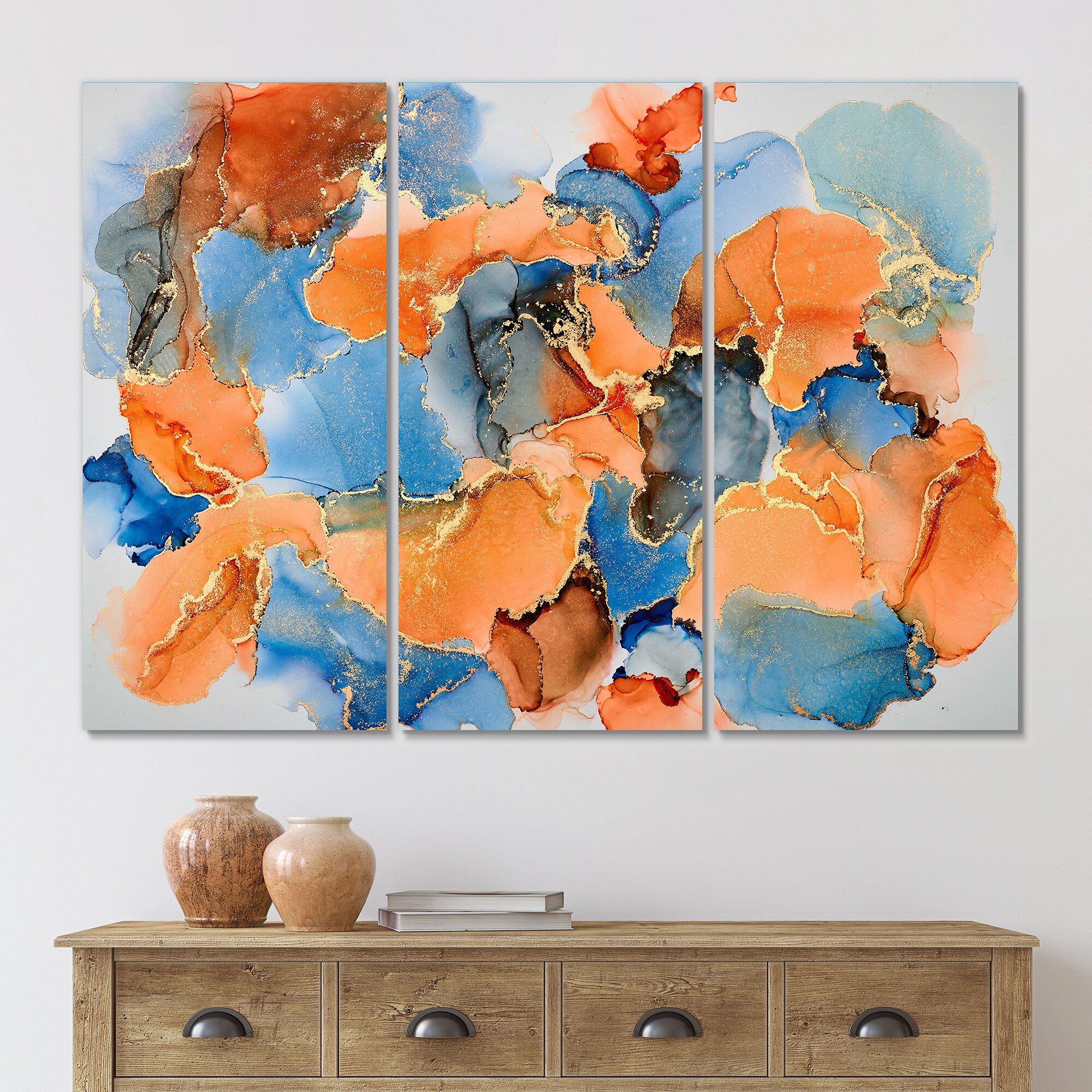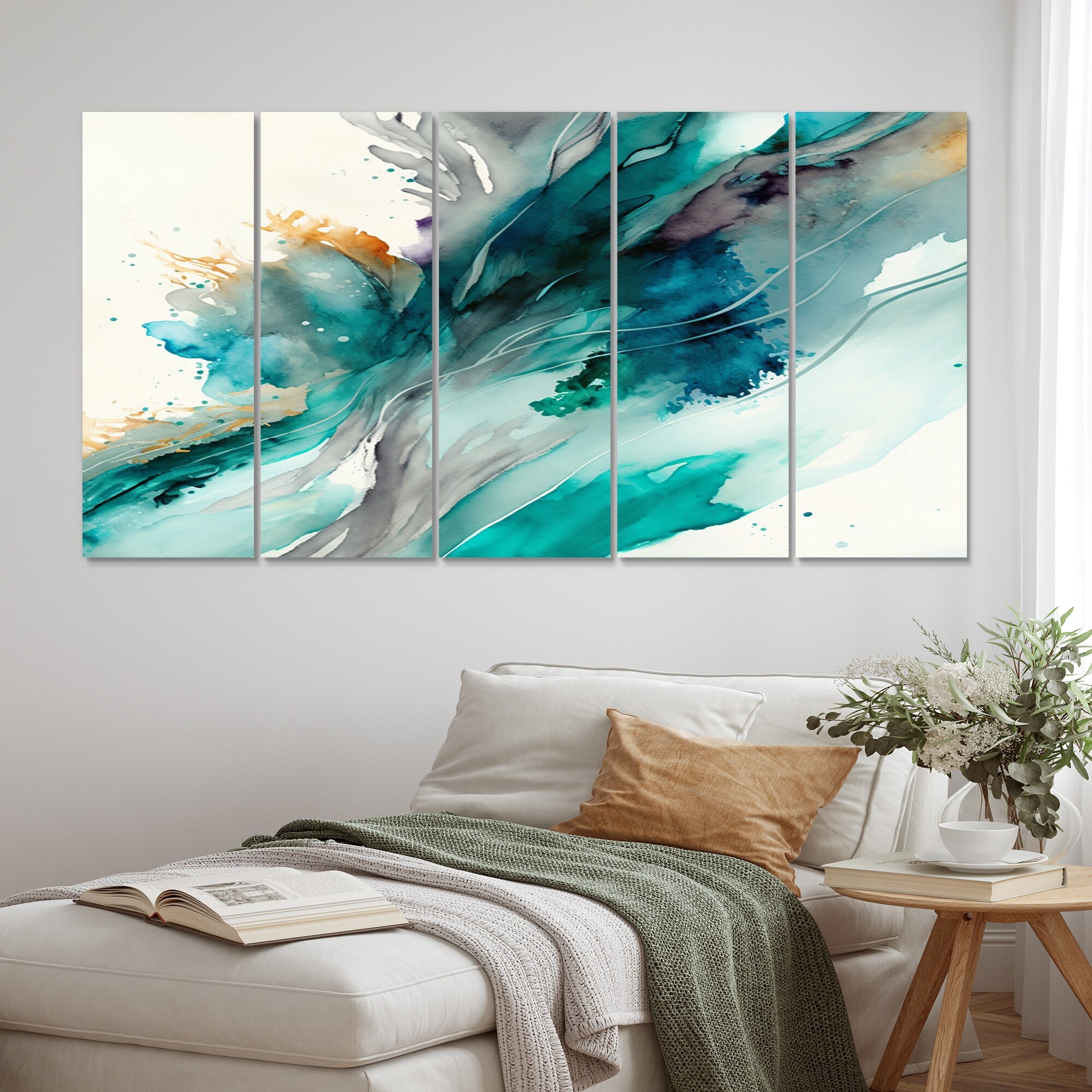 Designart "Celebrations In Turquoise Shades of Blue V" Abstract Liquid Ink Multipanel Wall Art Living Room