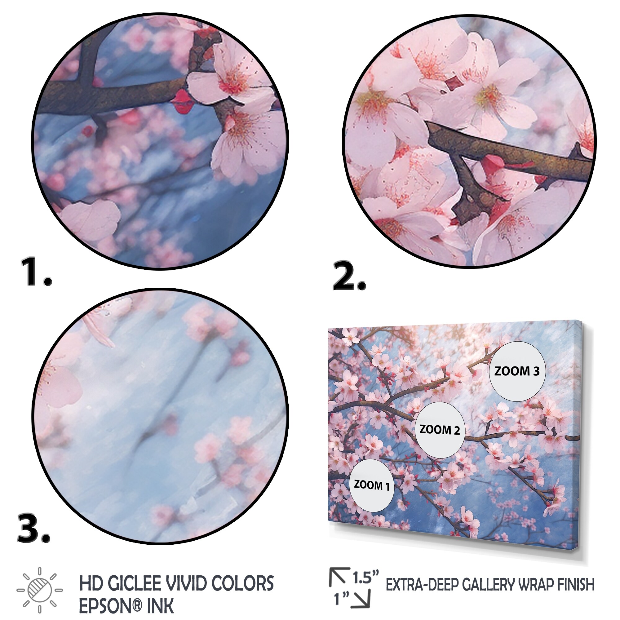 Designart "Minimalist Pink Cherry Blossoms V" Cherry Blossom Framed Wall Art Prints