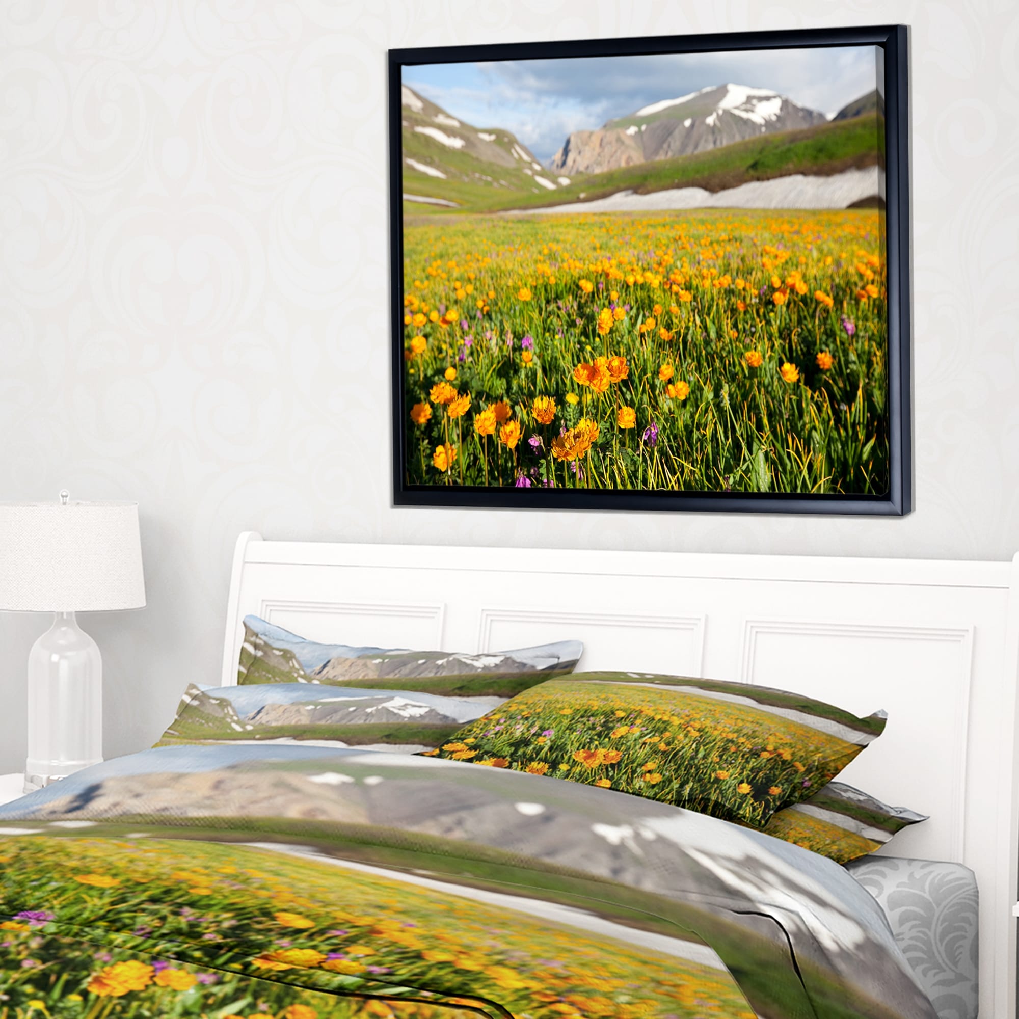 Designart "Mountain Plain with Wild Yellow Flowers" Floral Framed Canvas Art Print