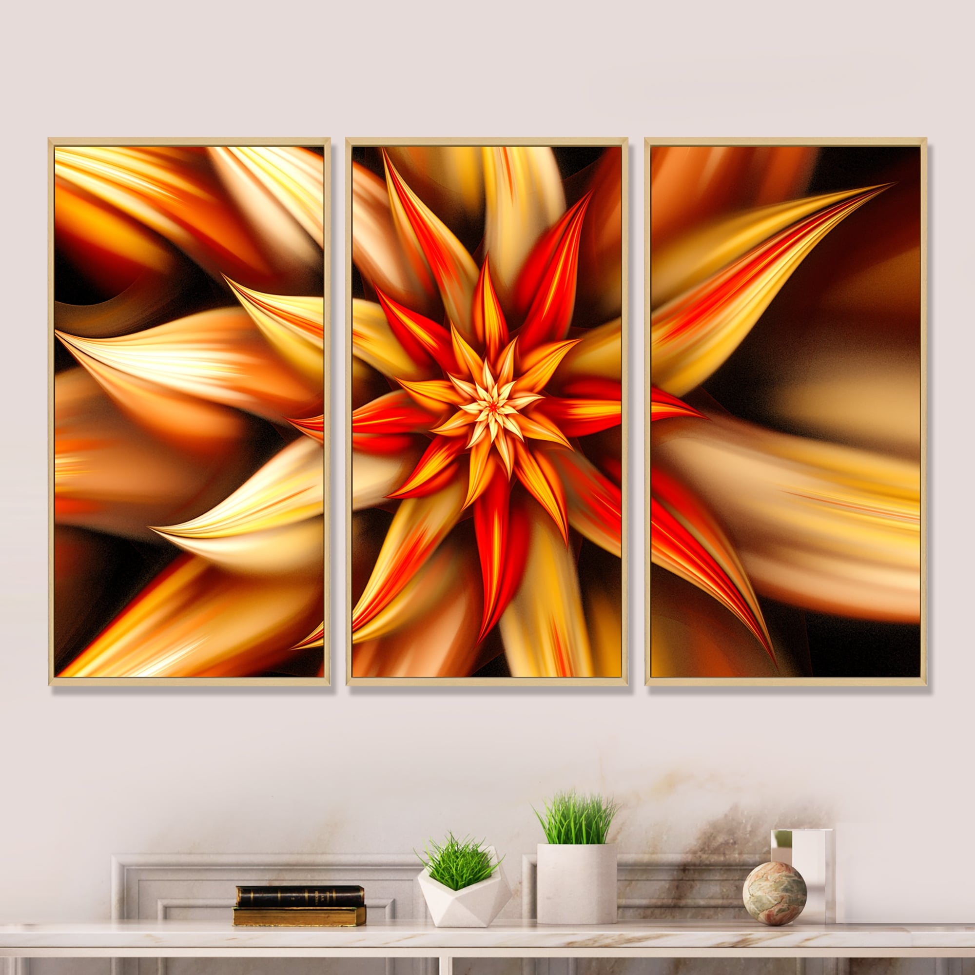 Designart "Beautiful Brown Flower Petals" Floral Framed Art Prints Set of 3 - 4 Colors of Frames