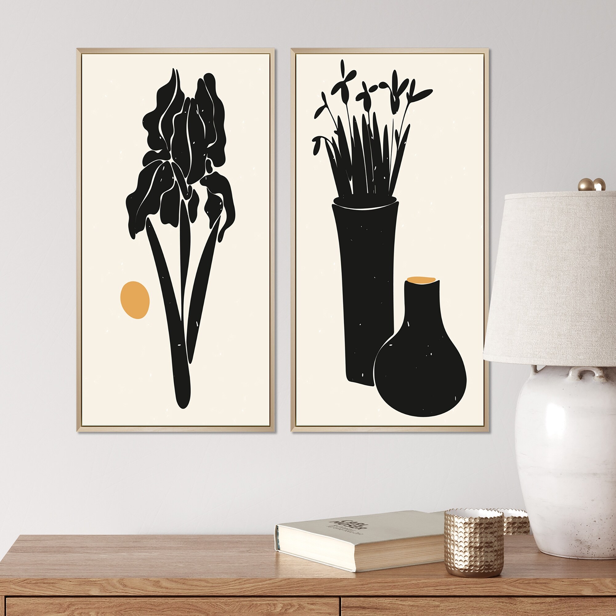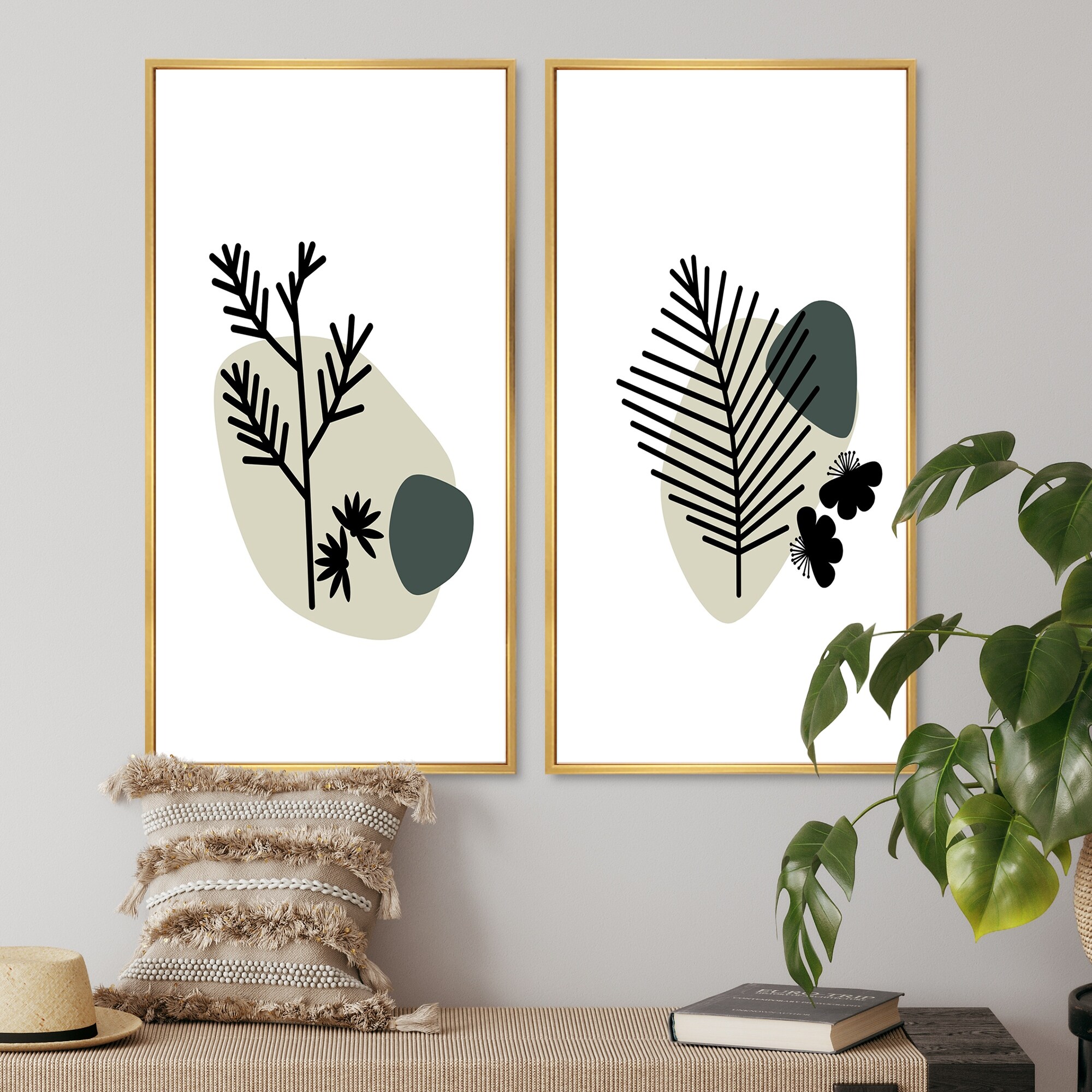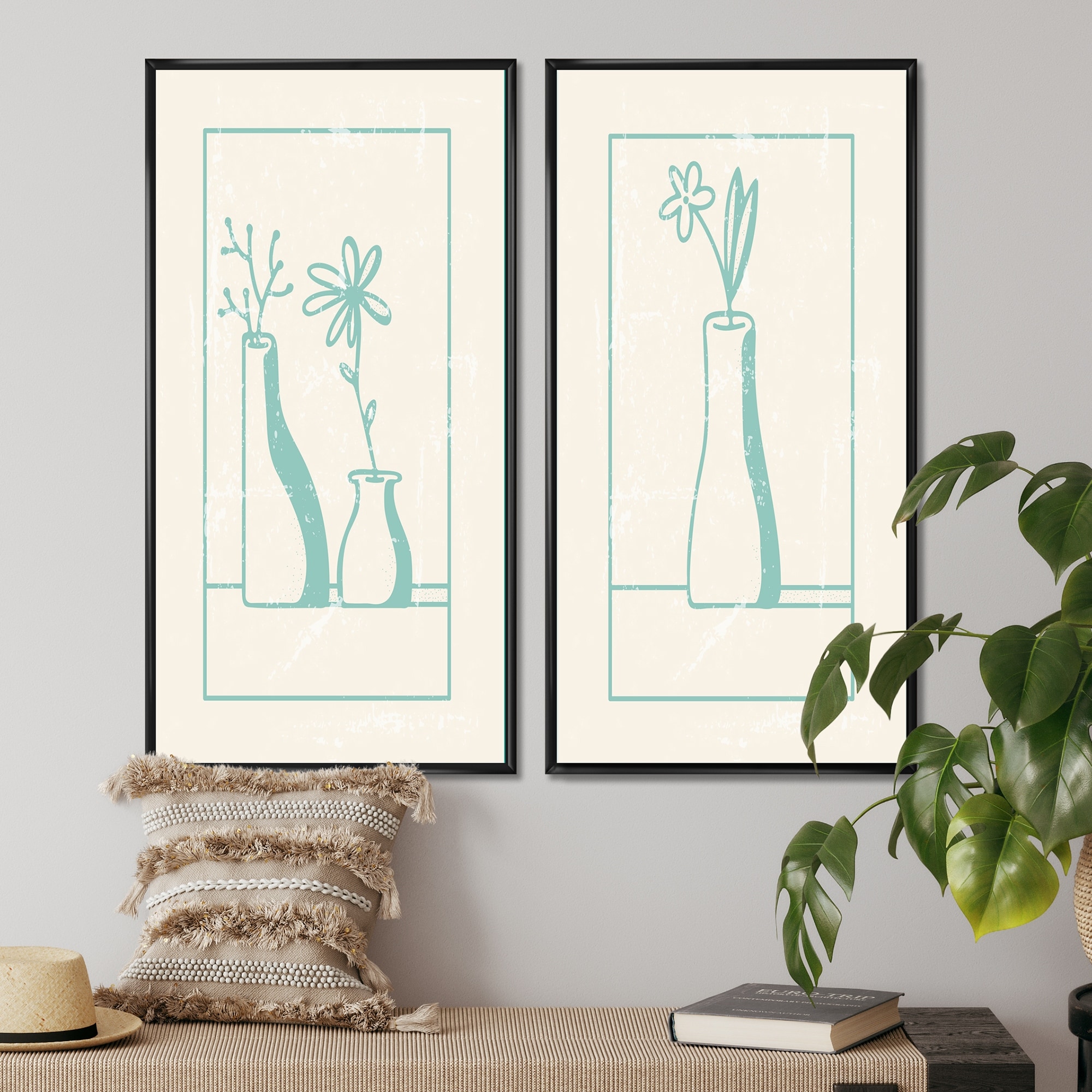 Designart "Minimalistic Floral Retro Illustrations I" Floral Framed Art Set of 2 Pieces