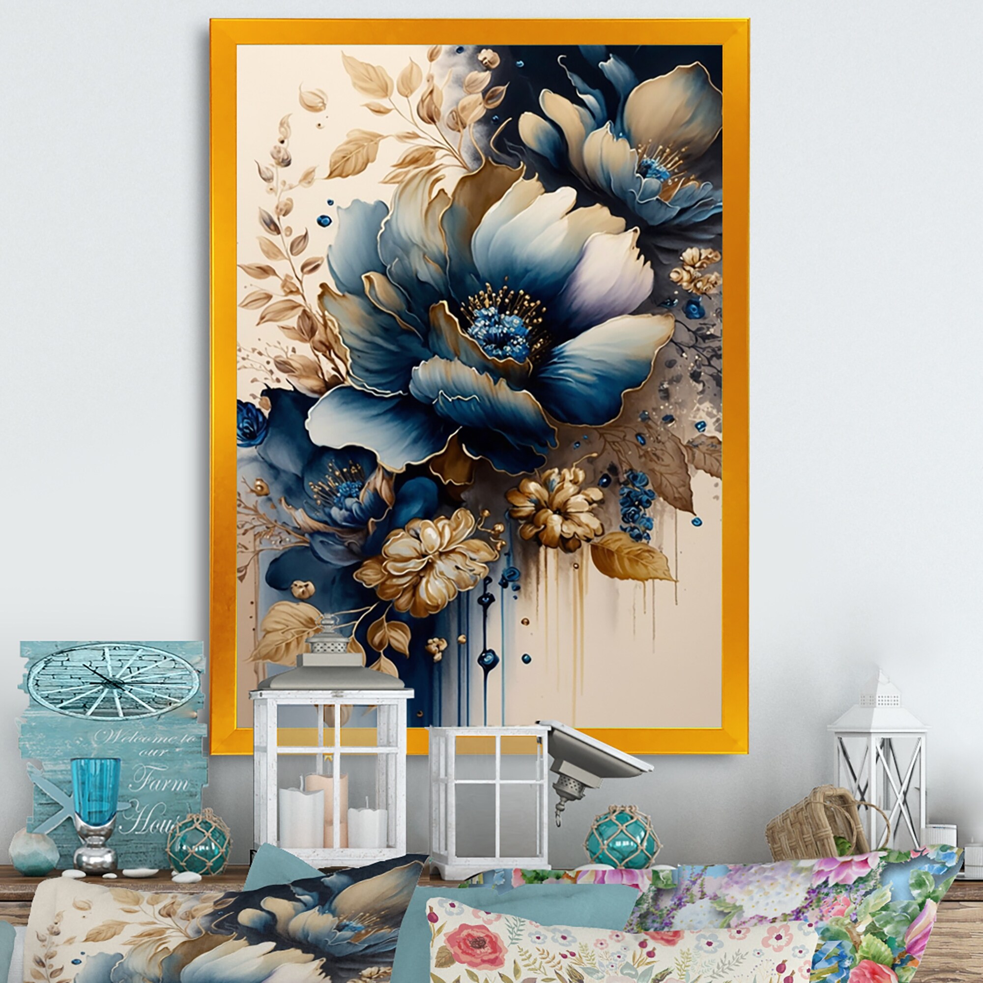 Designart "Blue And Gold Floral Bunch III" Floral & Botanical Framed Art Print