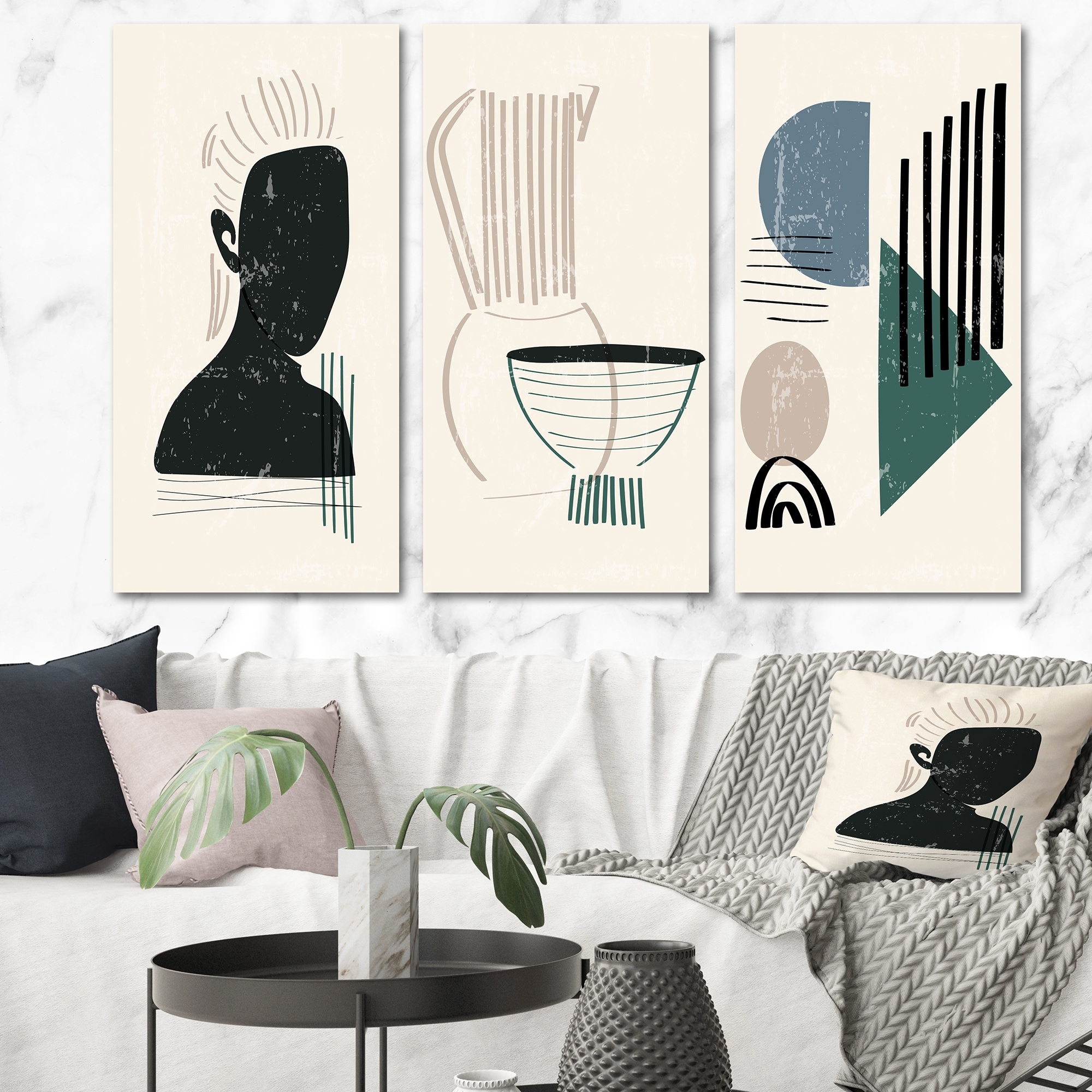 Designart 'Retro Vintage Organic Boho Geometrics I' Mid-Century Modern Art Set of 3 Pieces