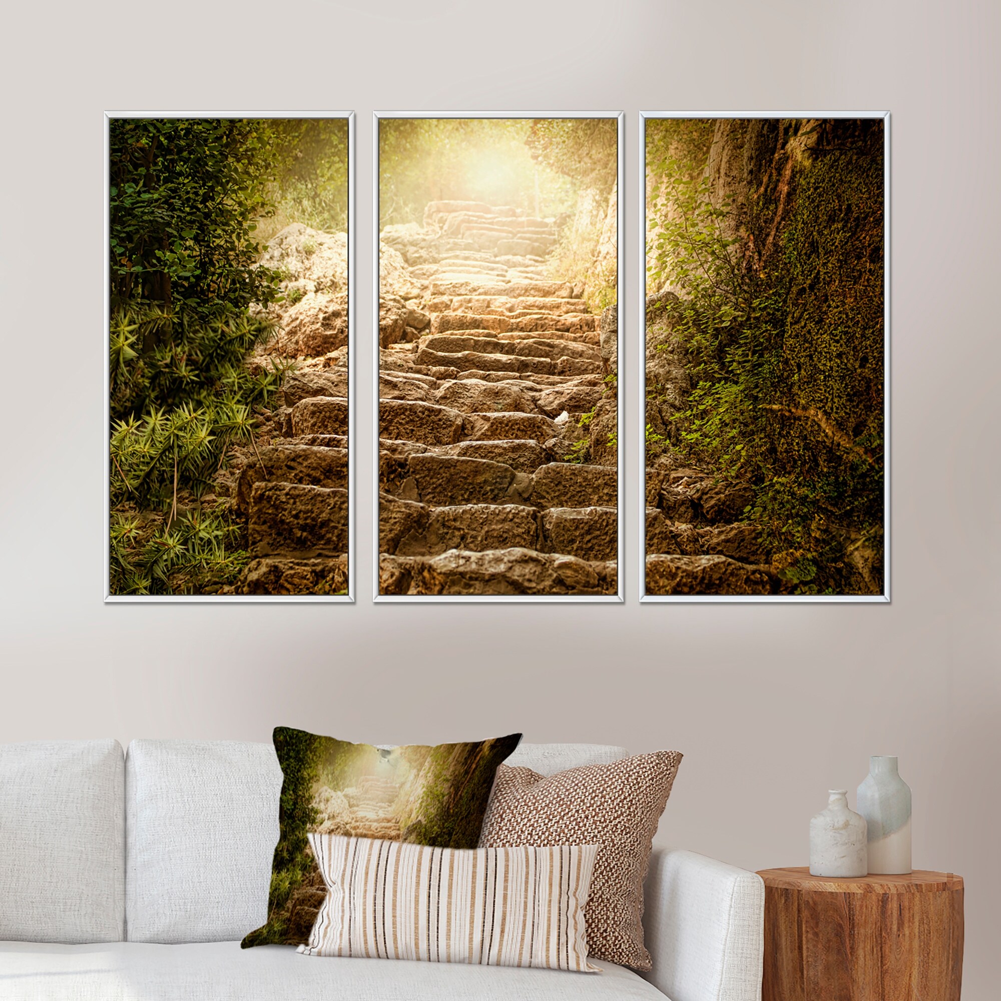 Designart "Holy Light and Upstairs" Landscape Framed Canvas Wall Art Print Set of 3 - 4 Colors of Frames