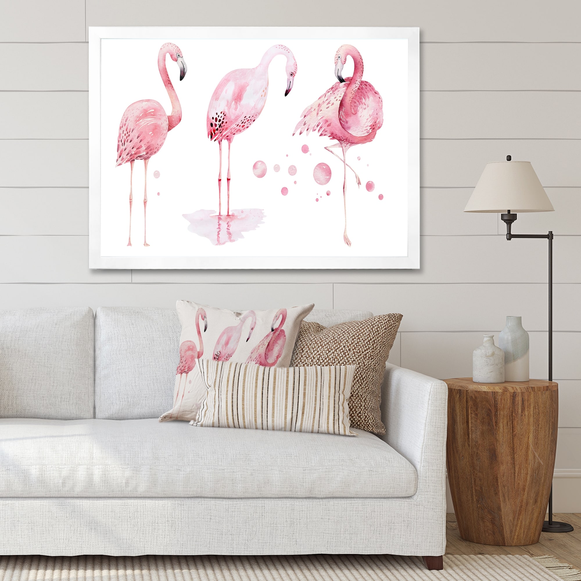Designart "Pink Flamingos on White" Traditional Framed Art Print
