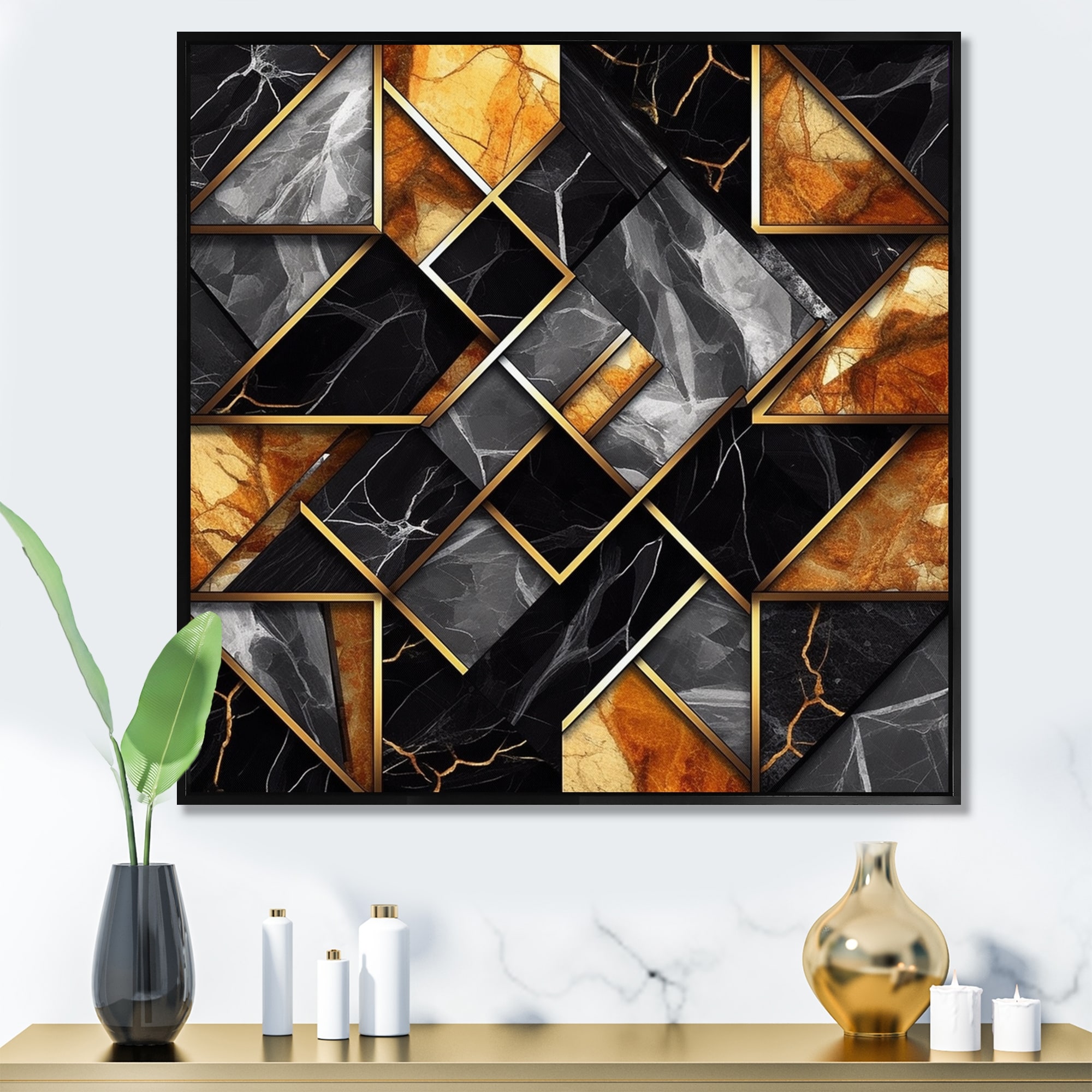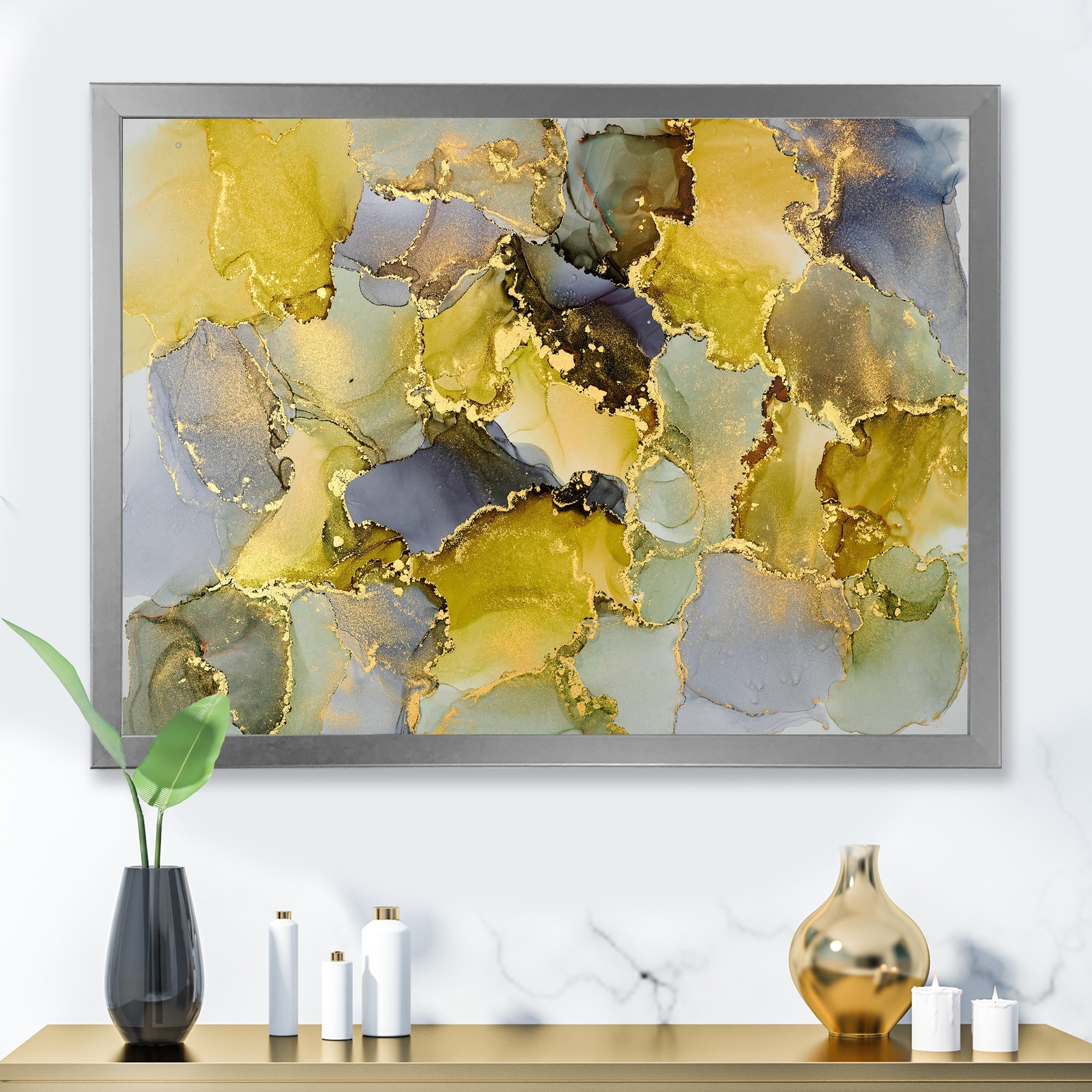 Designart "Marble Granite Agate With Touches of Gold XVII" Modern Geometric Framed Canvas Art Print