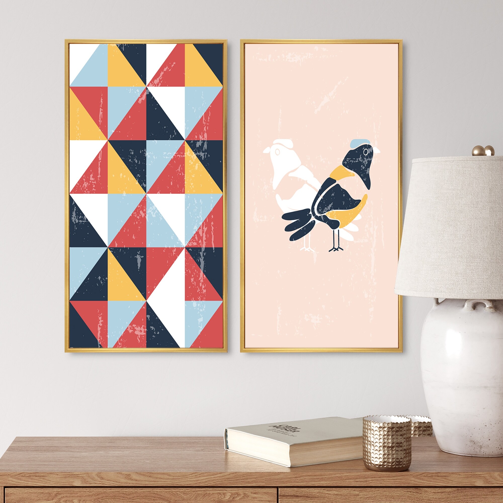 Designart "Vintage Retro Birds II" Animals Framed Art Set of 2 Pieces