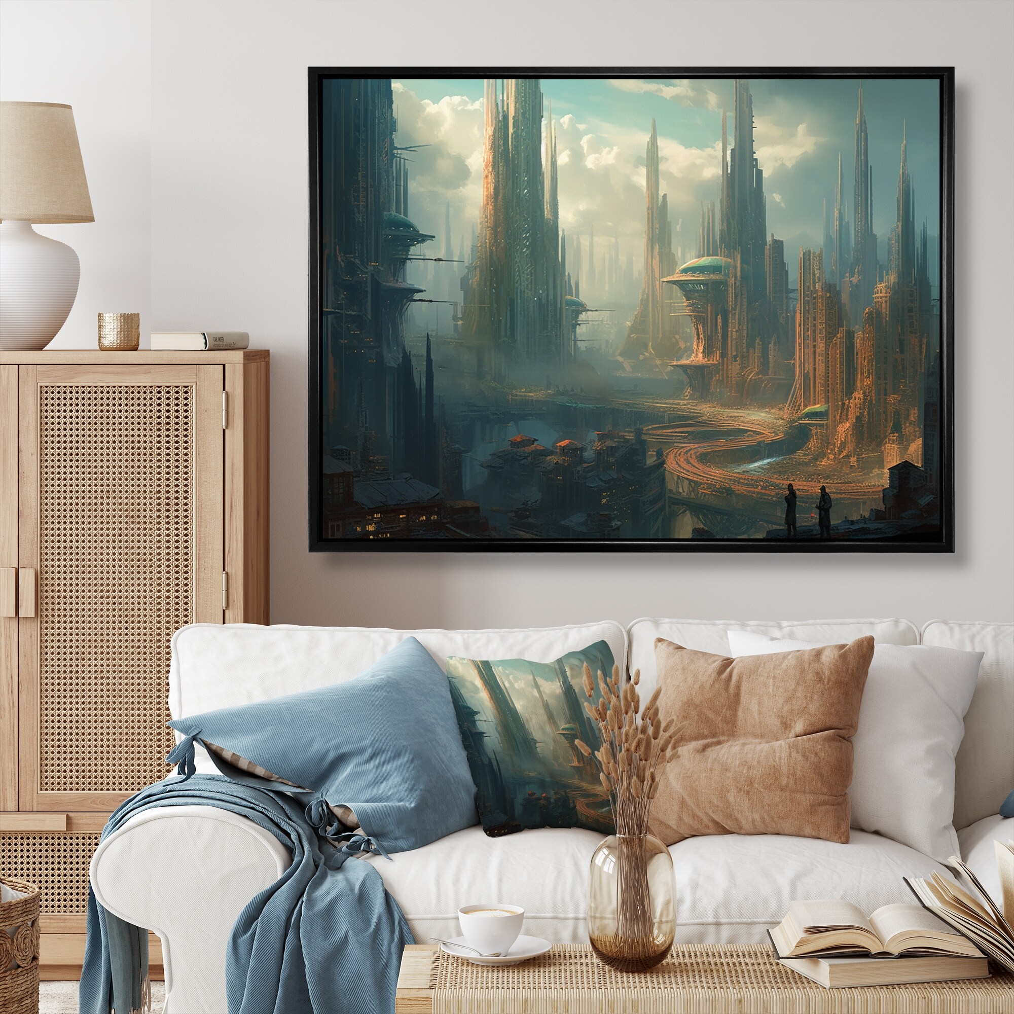 Designart "Futuristic City I" City Futuristis Framed Wall Art Prints