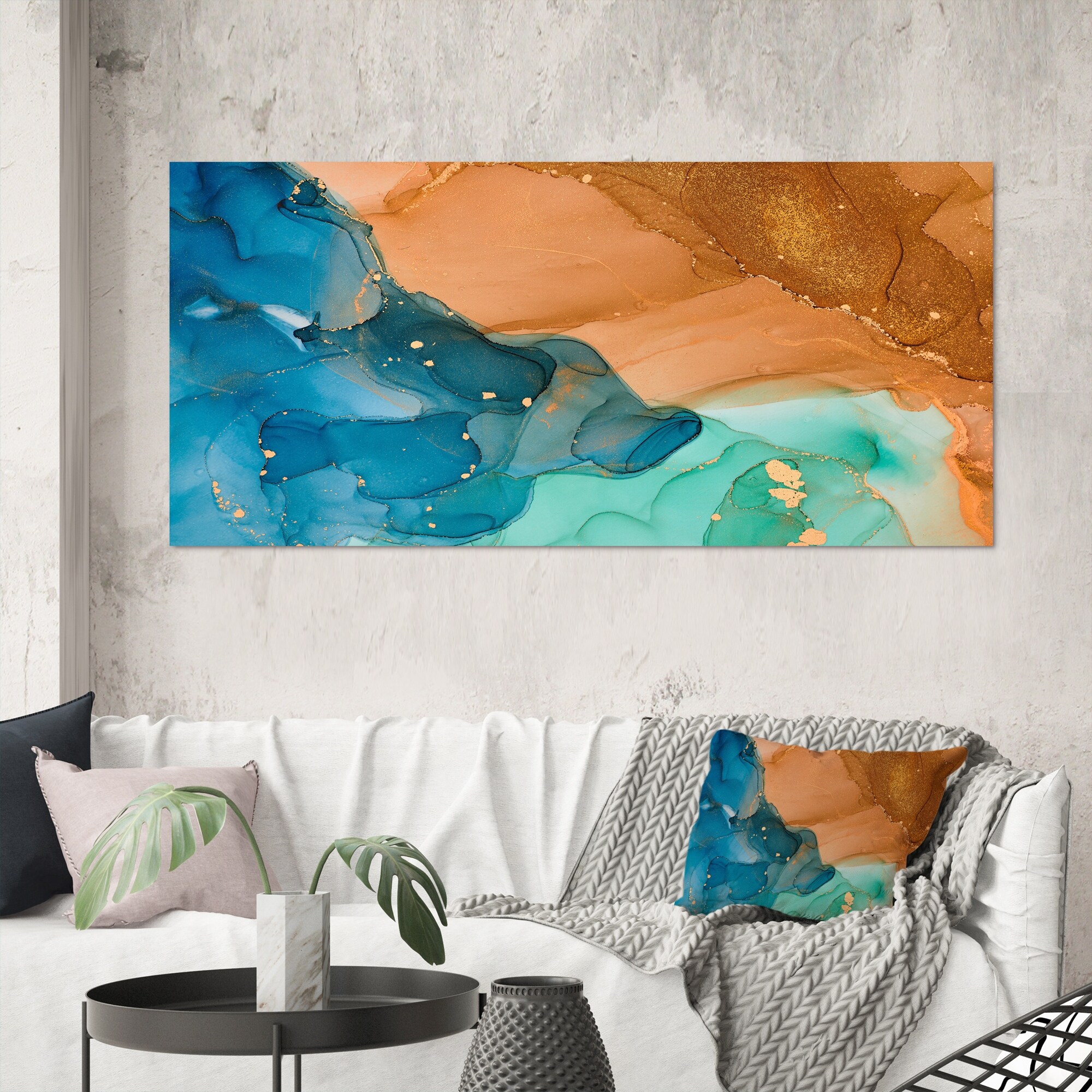 Designart "Blue And Brown Luxury Abstract Fluid Art VII" Modern Canvas Wall Art Print