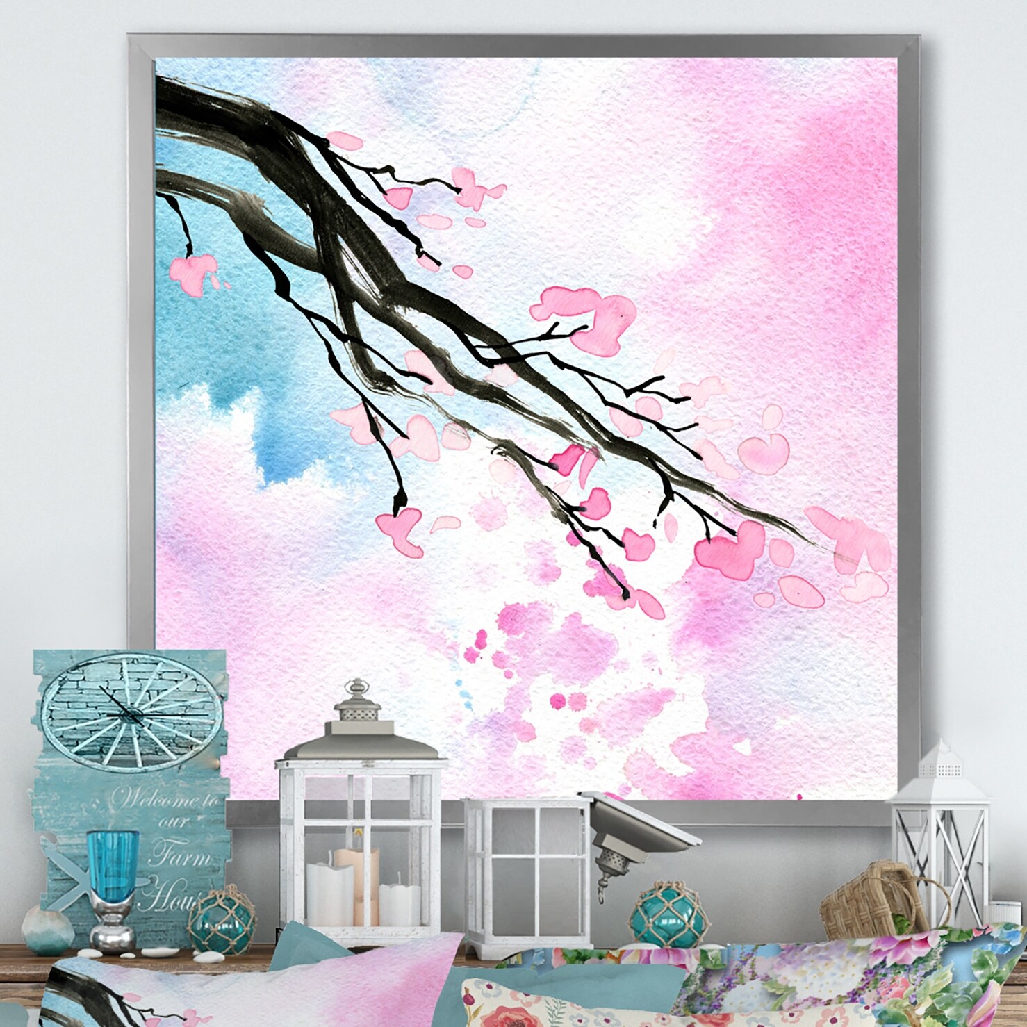 Designart "Cherry Blossom Branch" Traditional Framed Wall Art