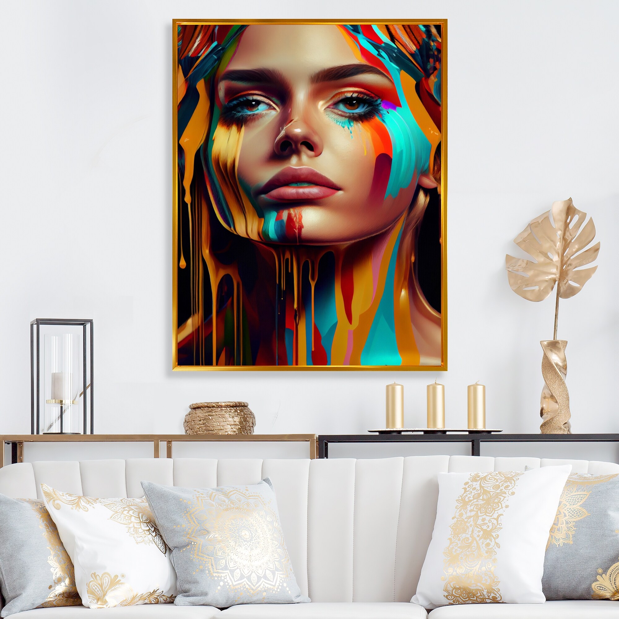 Designart "Vibrant Creative Woman Portrait V" Contemporary Glam Framed Canvas Art Print
