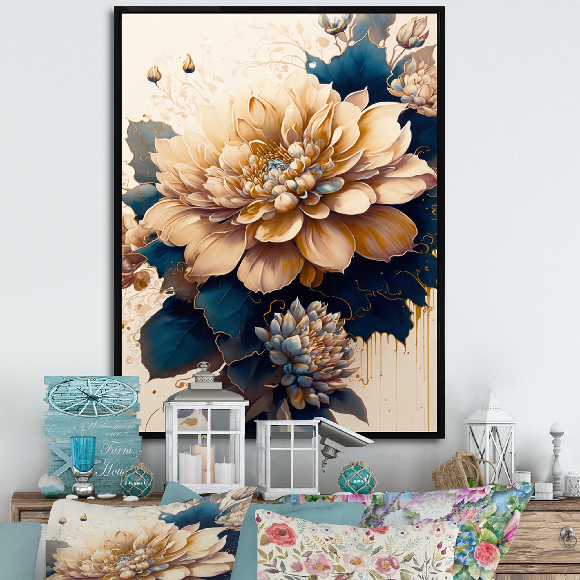 Designart "Light Orange And Dark Blue Dhalia II" Floral & Botanical Framed Canvas Art Print