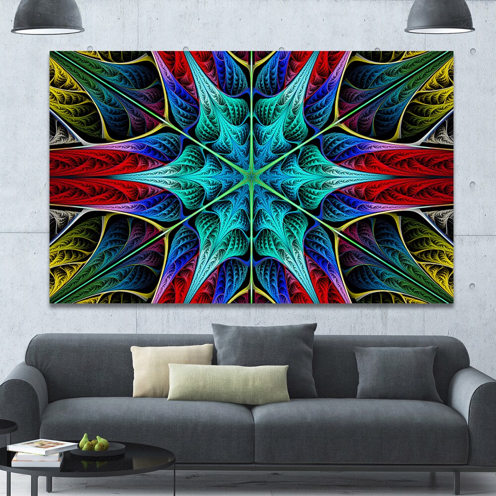 Designart "Glowing Fractal Flower Layers" Abstract Wall Art on Canvas