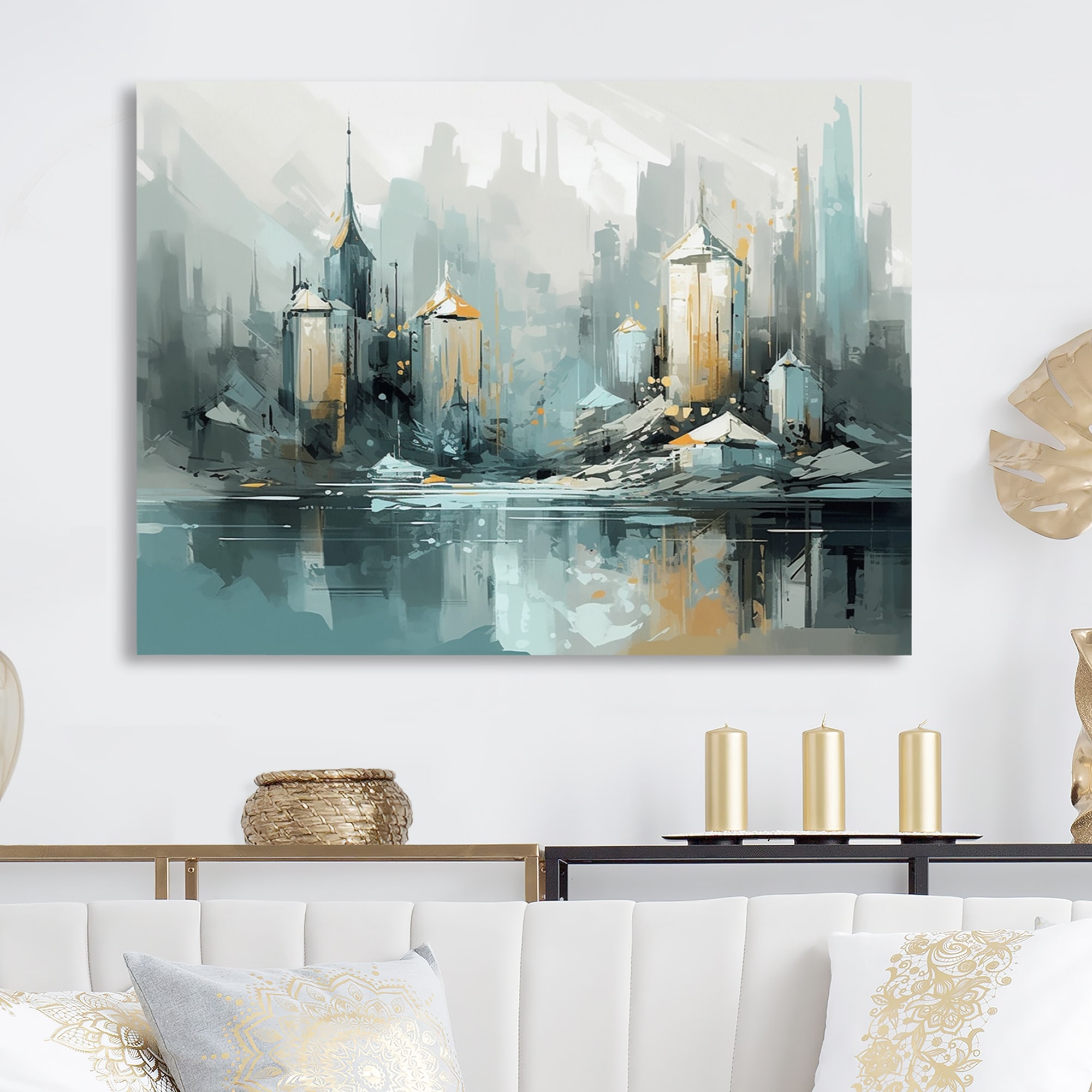Designart "Green And Yellow Modernist Cityscapes III" City Art Deco Metal Wall Art