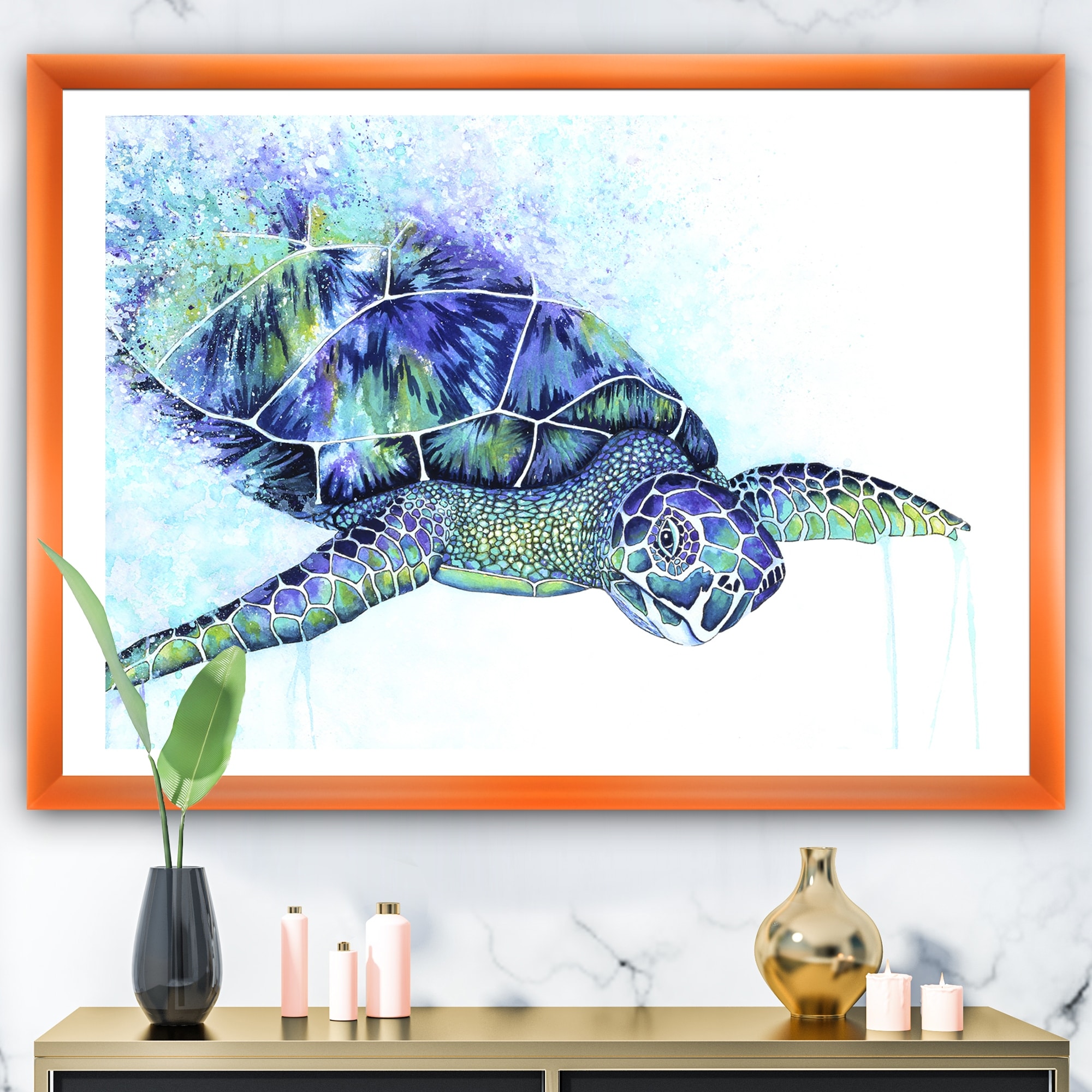 Designart "Sea Turtle" Cottage Framed Art Print