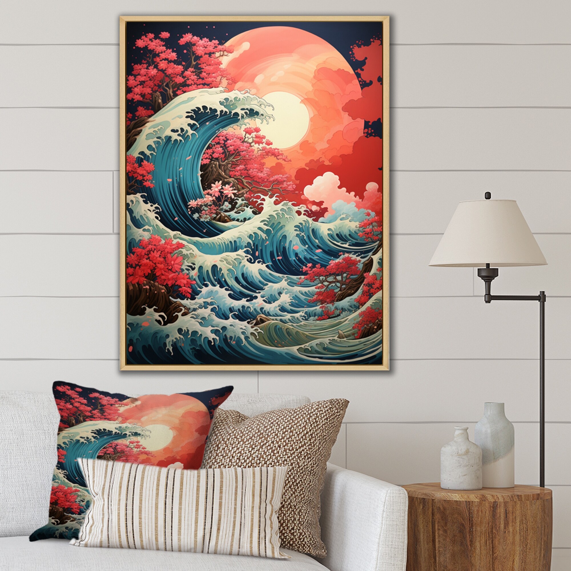 Designart "Dramatic Ocean Waves IV" Coastal Framed Wall Art Living Room